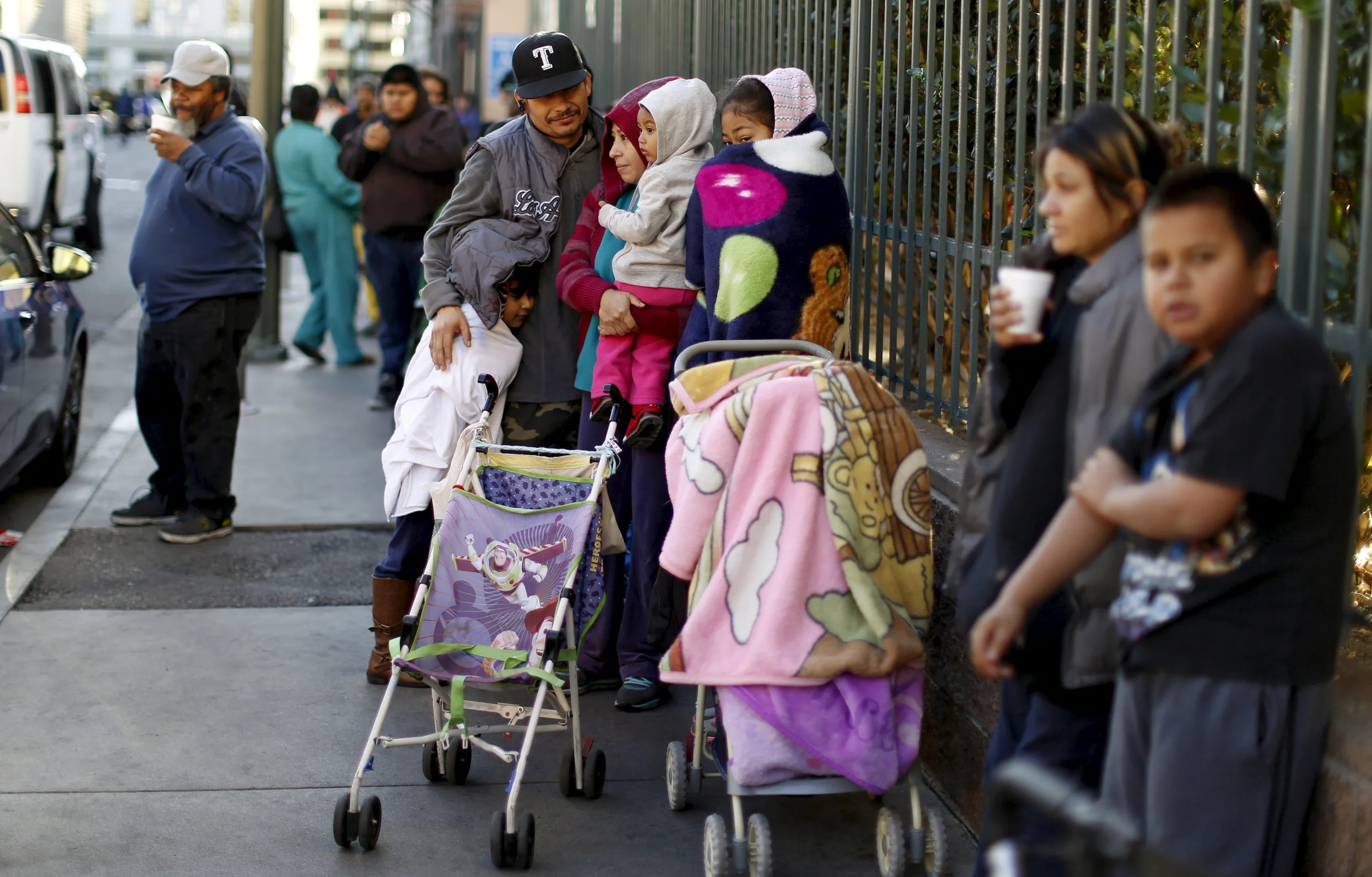 People wait in line for an early Thanksgiving meal served to the homeless at the Los Angeles Mission in Los Angeles, California November 25, 2015. (Photo by Mario Anzuoni/Reuters)