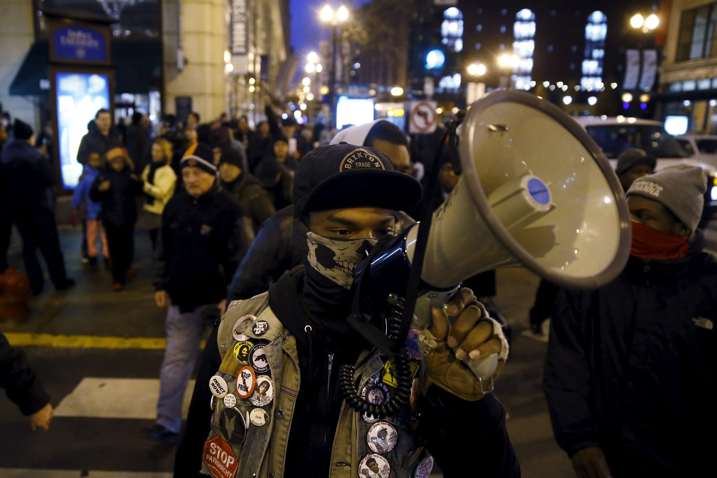 Protestors demonstrate in response to the fatal shooting of Laquan McDonald in Chicago, Illinois November 25, 2015. (Photo by Andrew Nelles/Reuters)