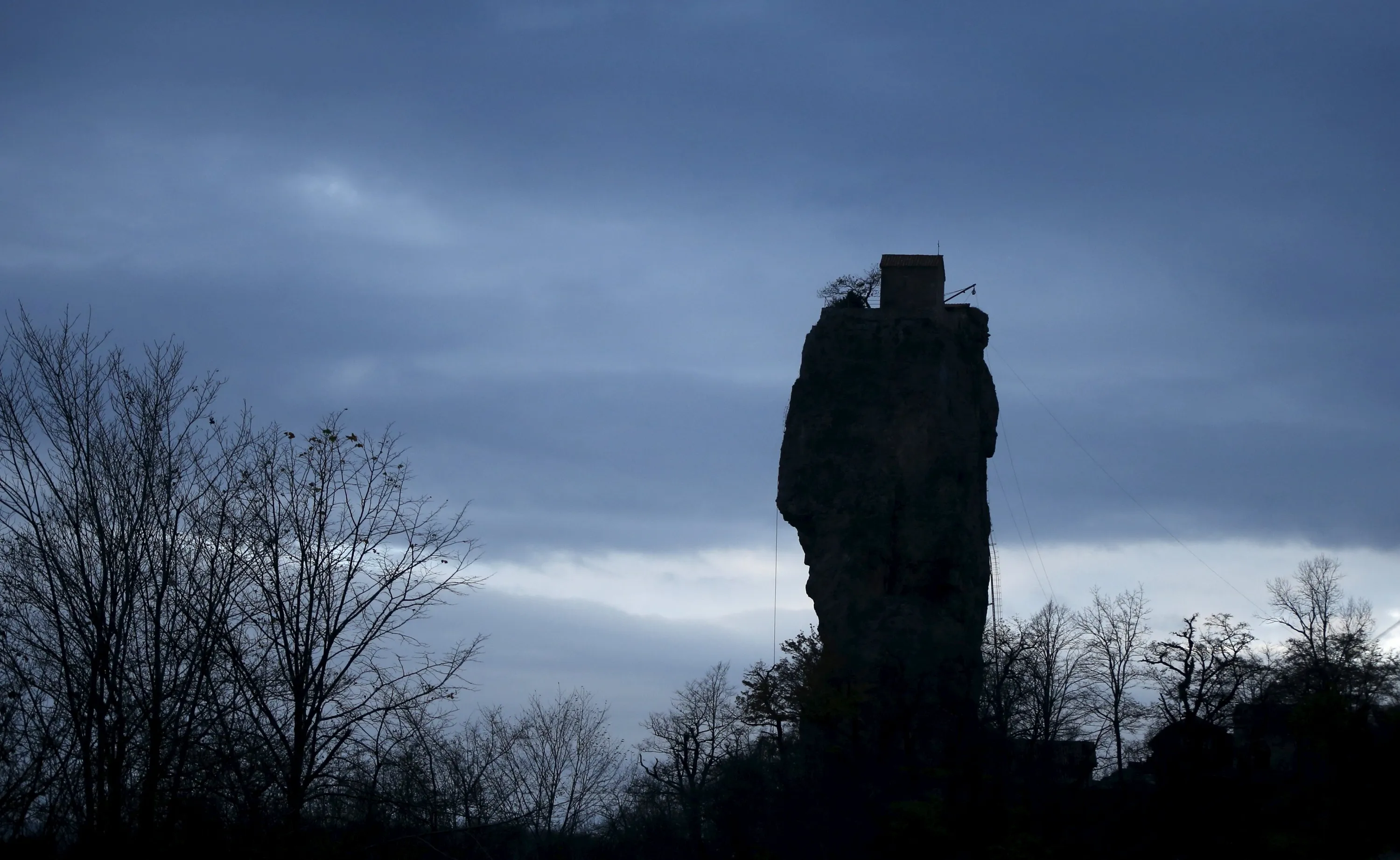 A church is seen on top of the Katskhi Pillar, a rock mass about 40 meters high, in the village of Katskhi, Georgia, November 27, 2015. (Photo by David Mdzinarishvili/Reuters)