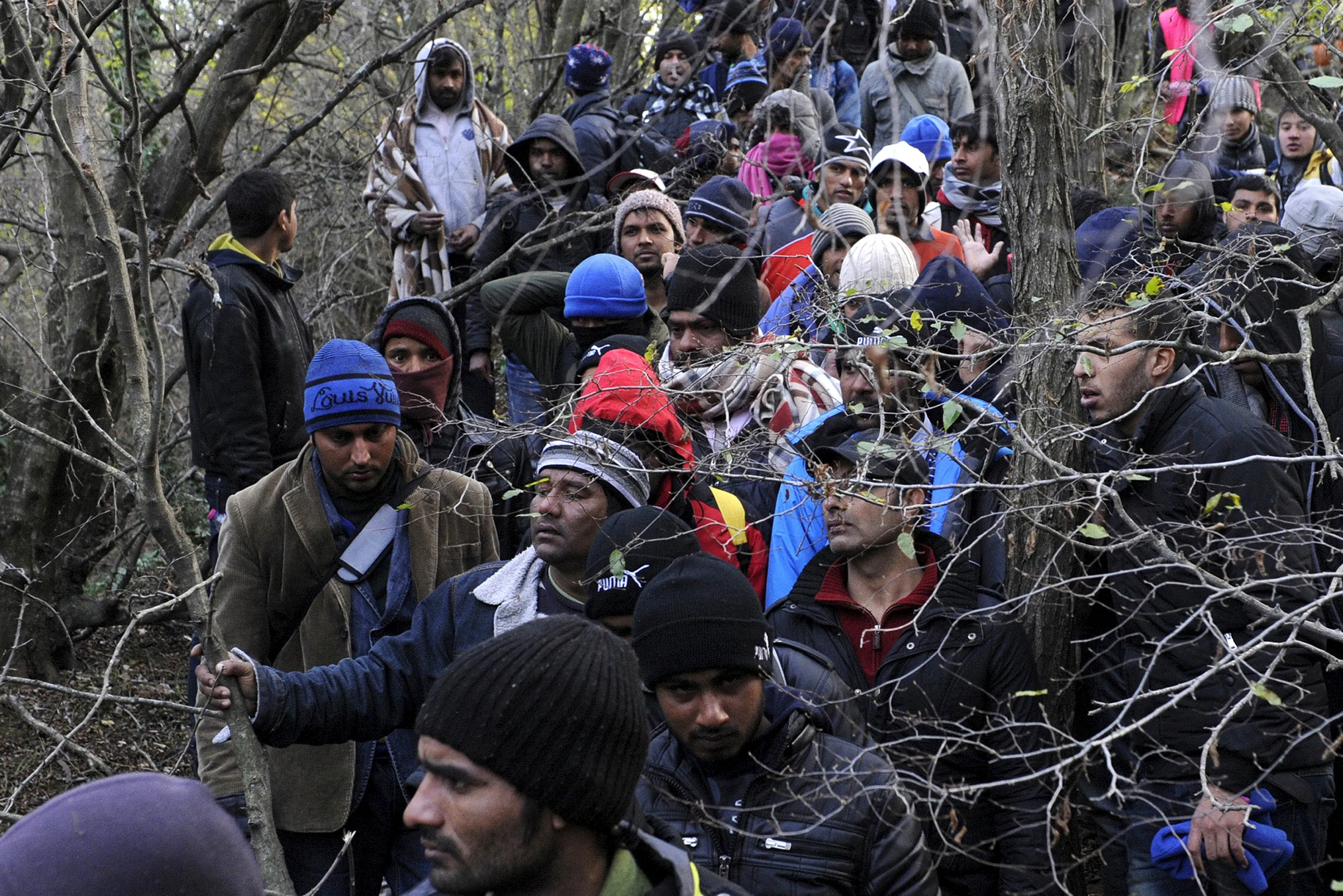 Stranded migrants make their way through a forest as they try to cross the Greek-Macedonian border, near the village of Idomeni, Greece December 2, 2015. (Photo by Alexandros Avramidis/Reuters)