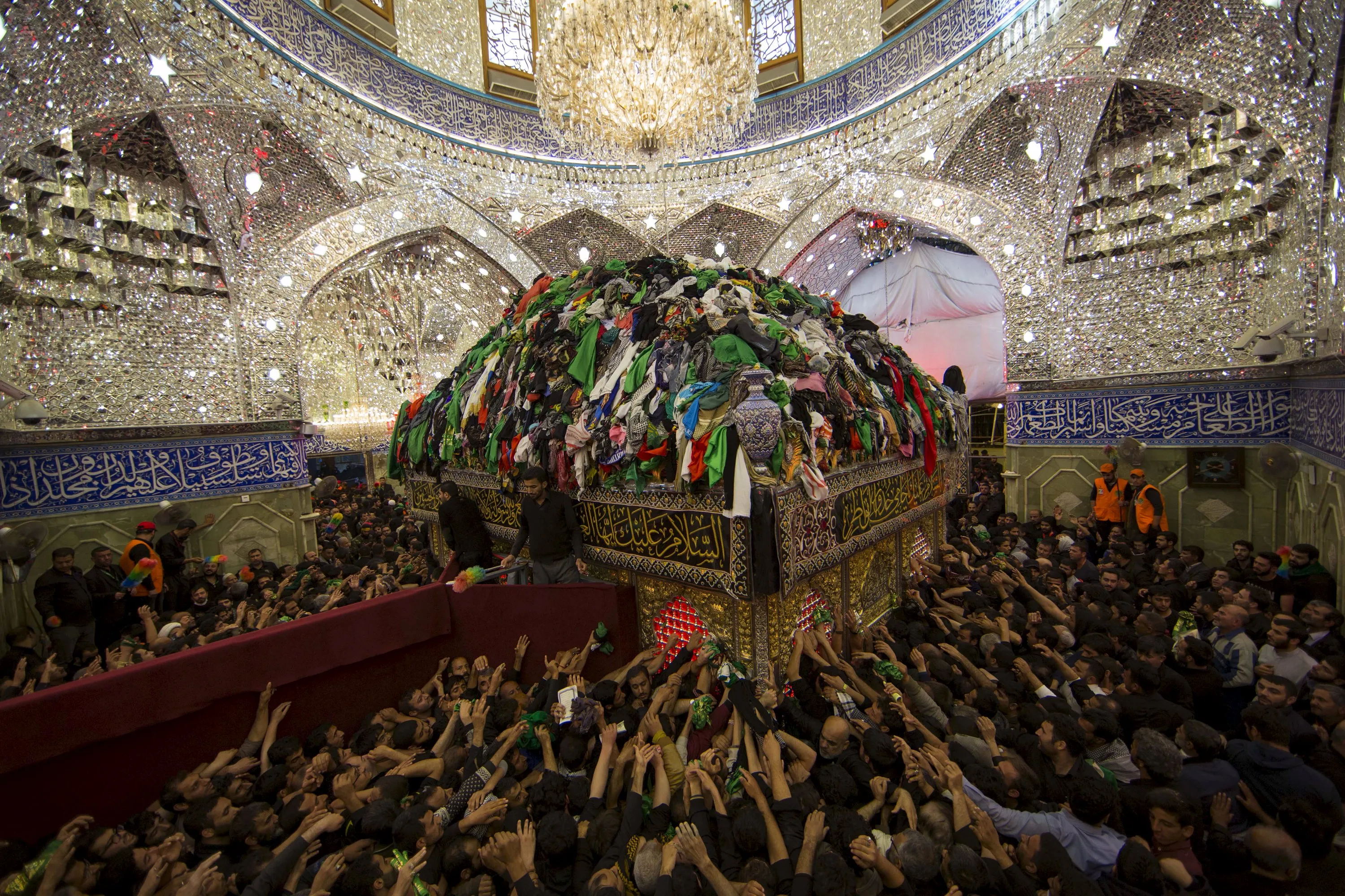 Shi'ite Muslim pilgrims reach out to touch the tomb of Imam al-Abbas located inside the Imam al-Abbas shrine to mark Arbaeen, in the holy city of Kerbala, southwest of Baghdad, December 3, 2015. (Photo by Ahmed al-Husseini/Reuters)