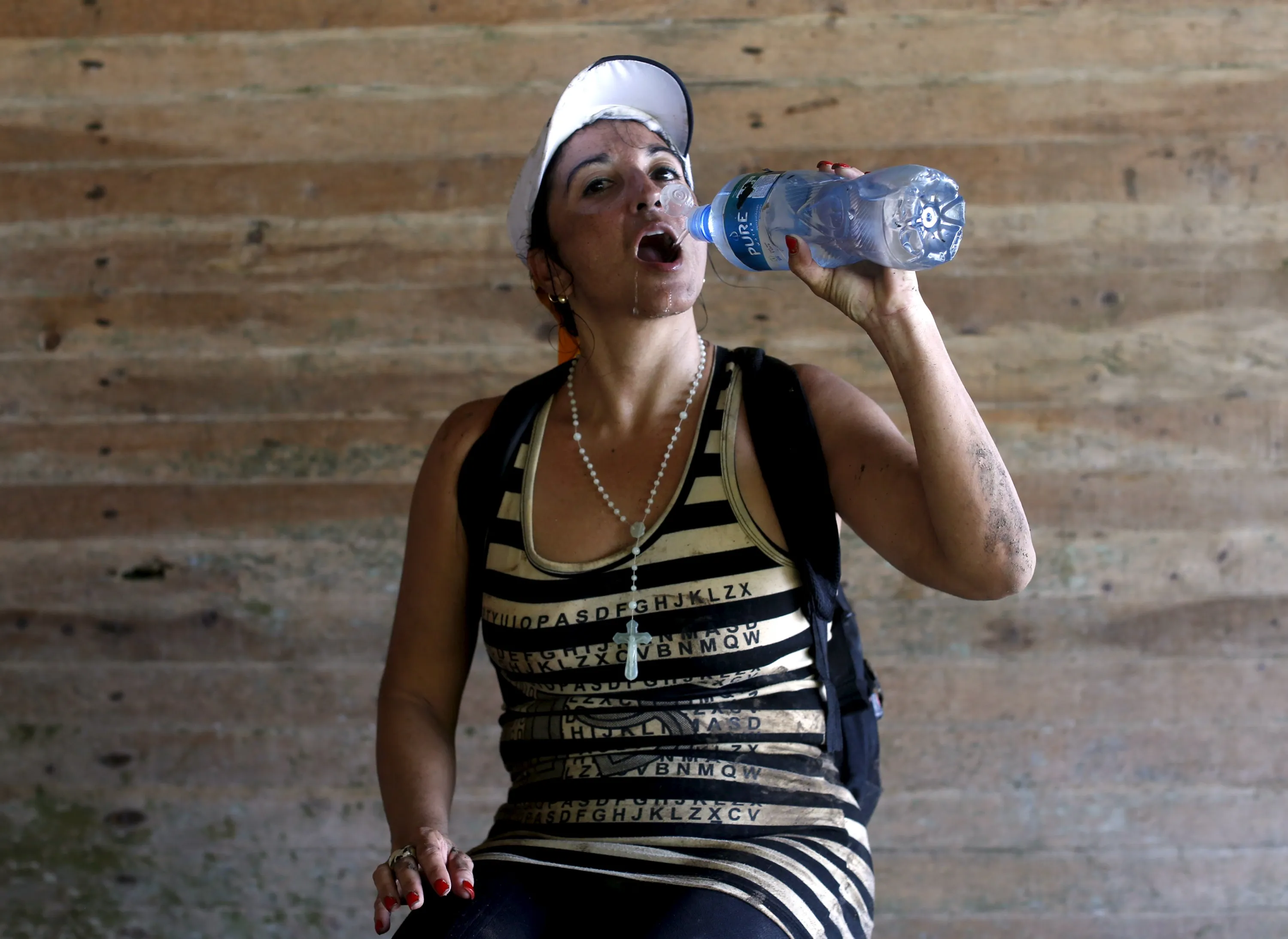 Cuban Roxana Perez, 44, a draftswoman, drinks water as she poses for a photograph after she crossed the border from Colombia through the jungle into La Miel, in the province of Guna Yala, Panama December 2, 2015. (Photo by Carlos Jasso/Reuters)