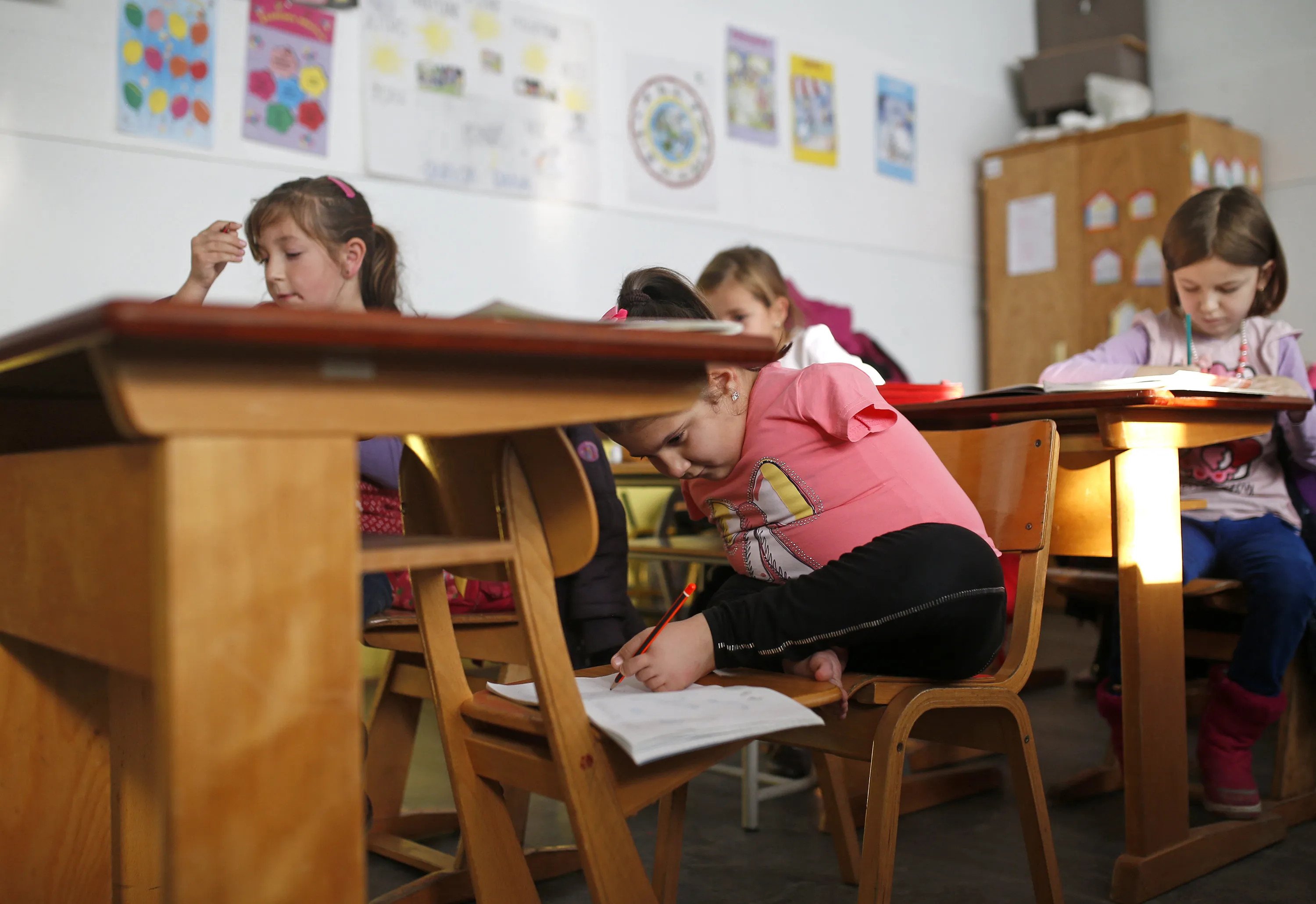 Ramela Meseljevic, a 7 year-old girl born without both of her hands and one of her legs shorter than the other, writes during classes in the her school in Begov Han, Bosnia and Herzegovina December 2, 2015. (Photo by Dado Ruvic/Reuters)