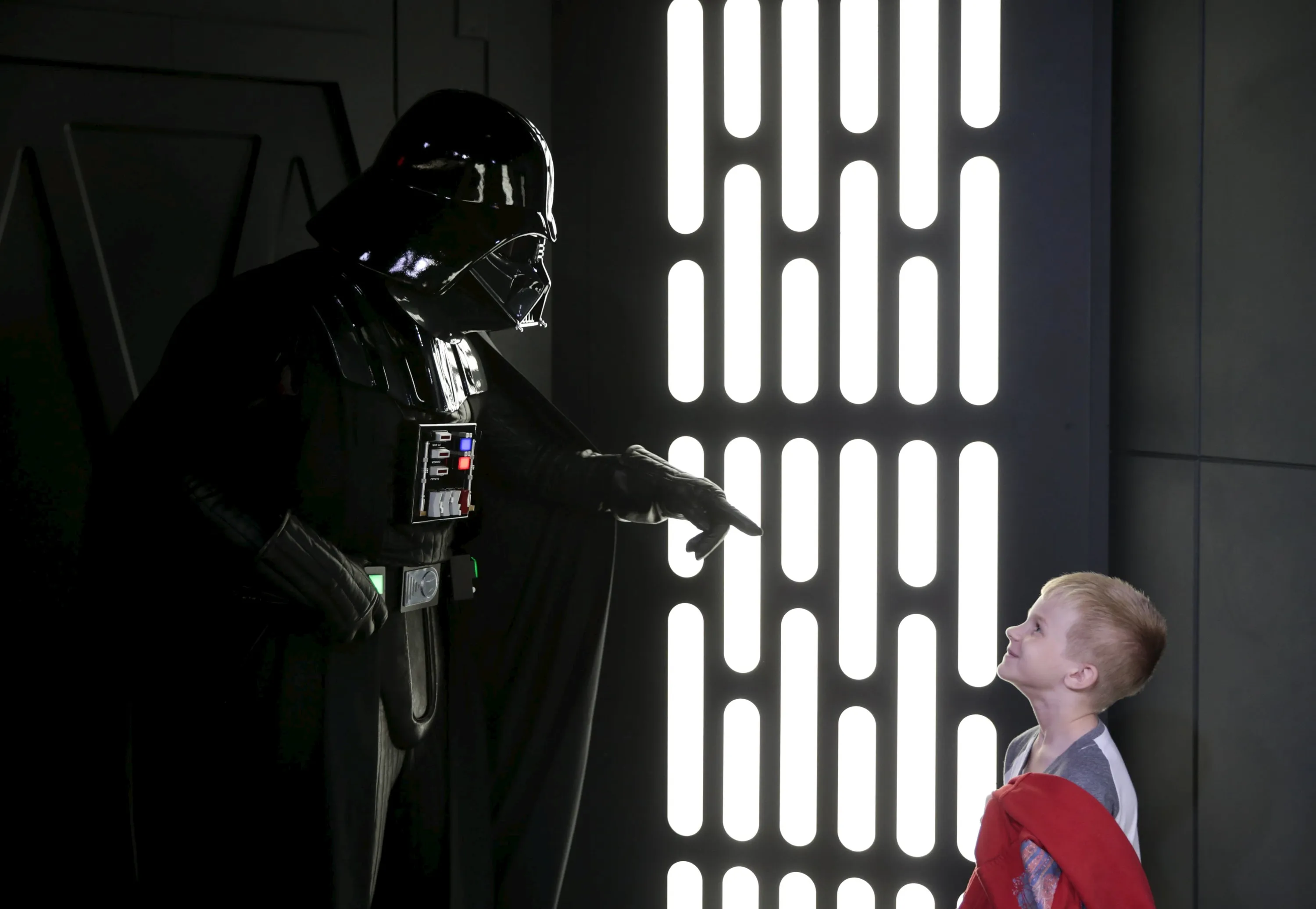 A young guest interacts with the character Darth Vader during the Star Wars Launch Bay grand opening at Disney's Hollywood Studios in Orlando, Florida December 4, 2015. (Photo by Scott Audette/Reuters)
