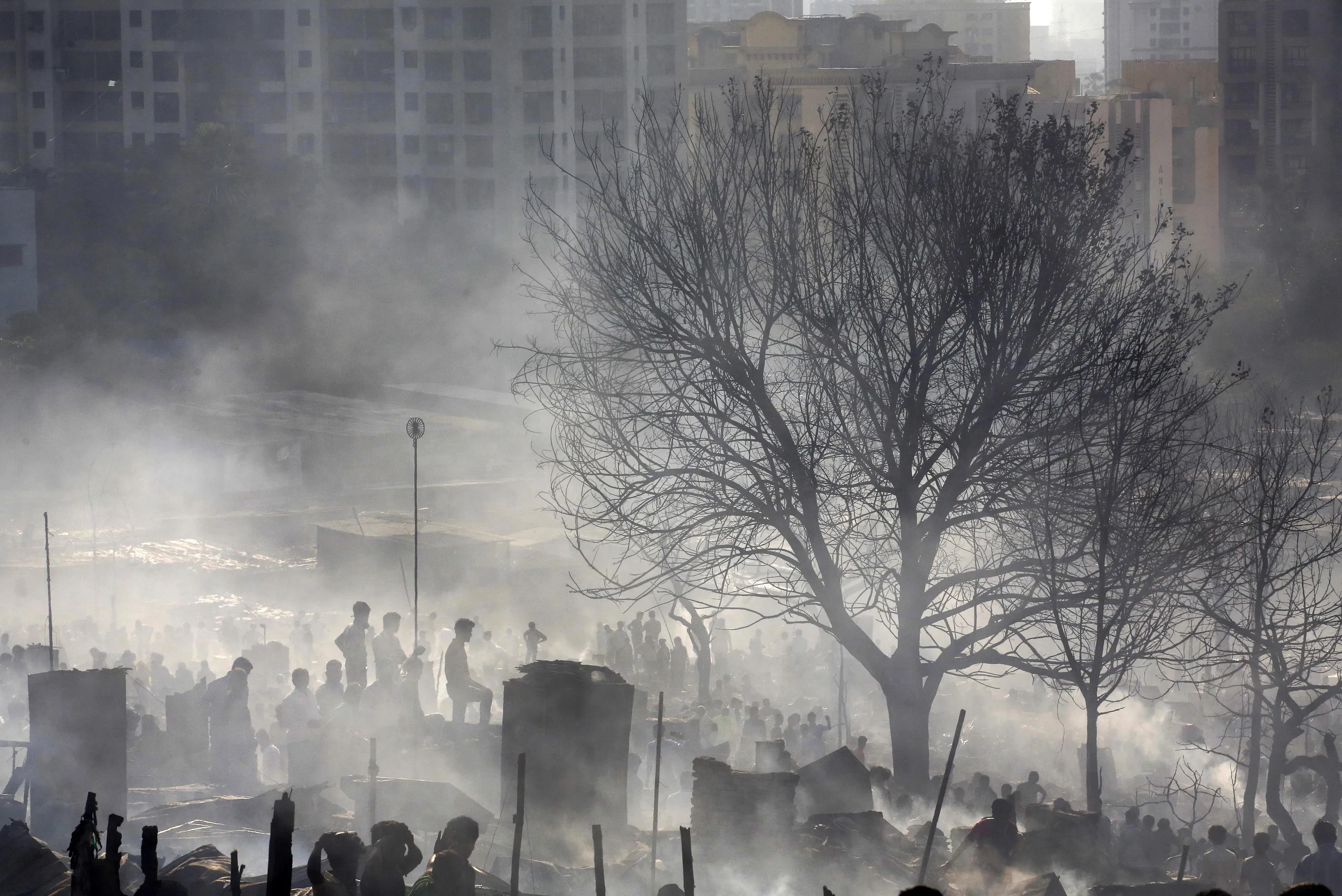 People search for their belongings after a fire broke at slums in Kadivali area of Mumbai, India, Monday, Dec. 7, 2015. Hundreds of homes were reportedly destroyed as fire tenders labored to reach the source in the heavily congested area. (AP Photo/Rajanish Kakade)
