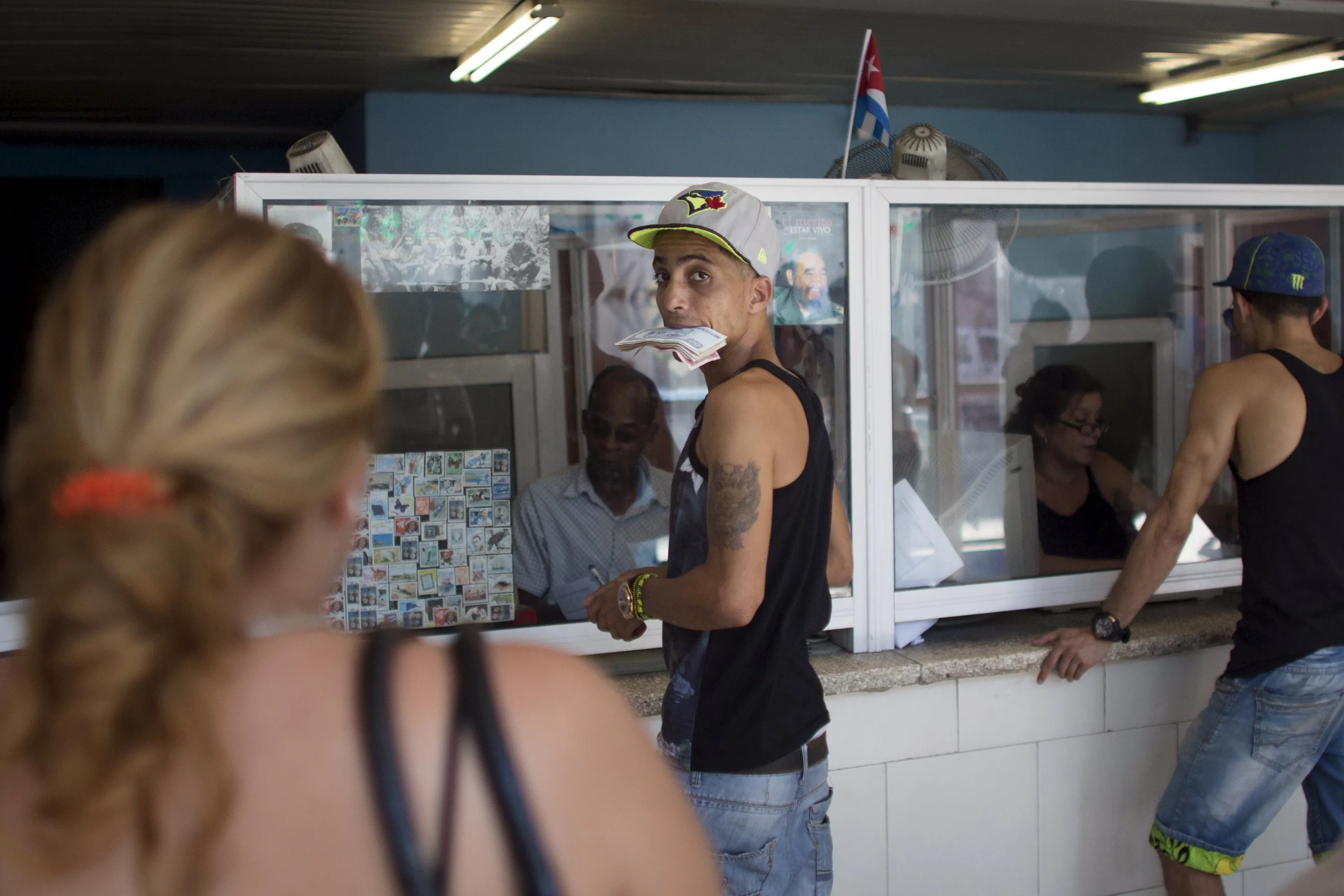 A man with money in his mouth looks on at a post office in Havana, December 11, 2015. Cuba and the U.S. have agreed to restore direct postal service after a half-century rupture in one of the first bilateral deals since the former Cold War foes re-established diplomatic ties in July. (Photo by Alexandre Meneghini/Reuters)