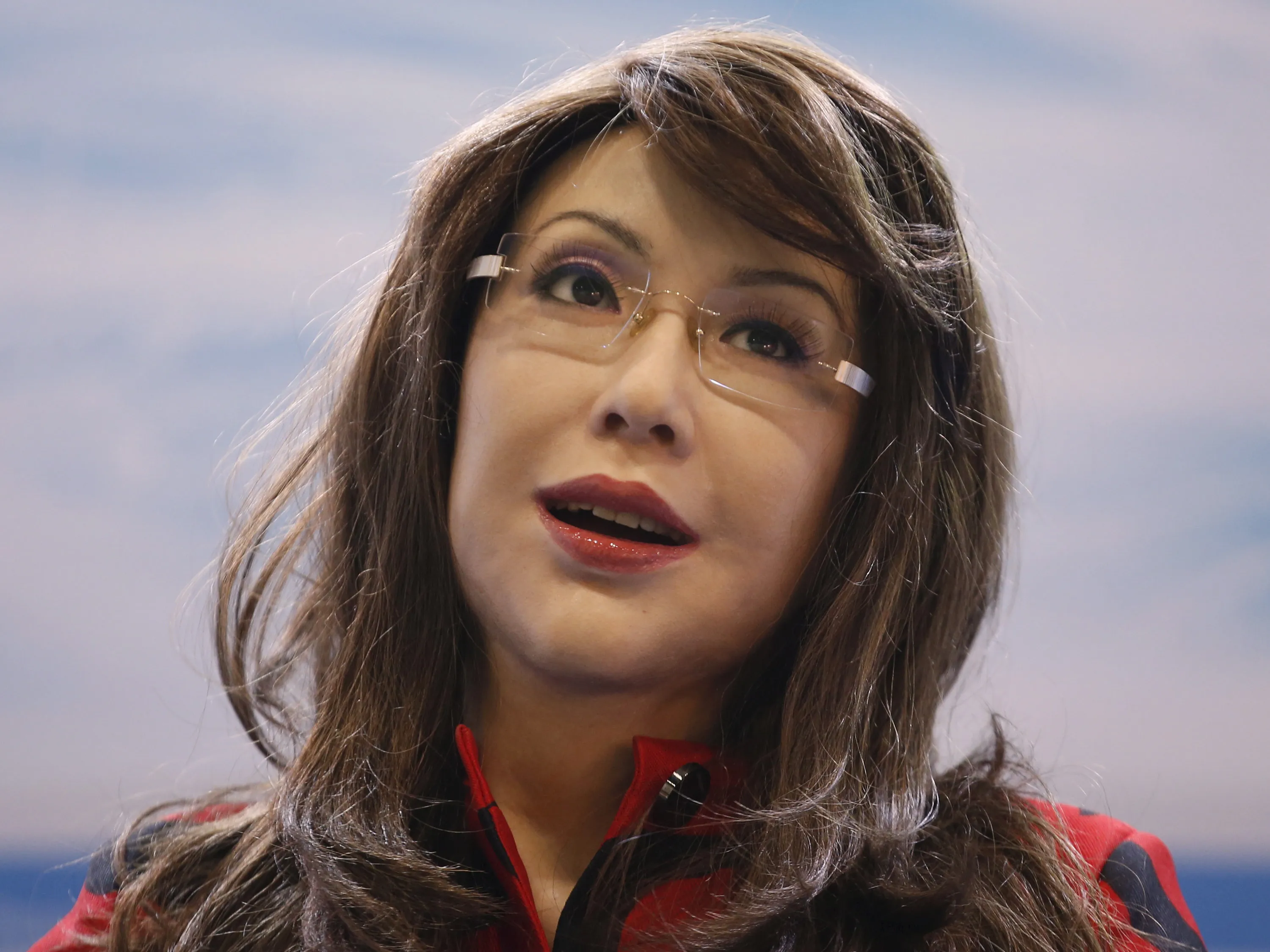 A humanoid robot named “Yangyang” shows a facial expression during its demonstration at the Global Mobile Internet Conference in Beijing, China, April 29, 2015. The android was produced jointly by China's Shanghai Yangyang Intelligent Robot Science Service center and Japanese professor Hiroshi Ishiguro, with the aim of popularizing robotics among the young. (Photo by Kim Kyung-Hoon/Reuters)