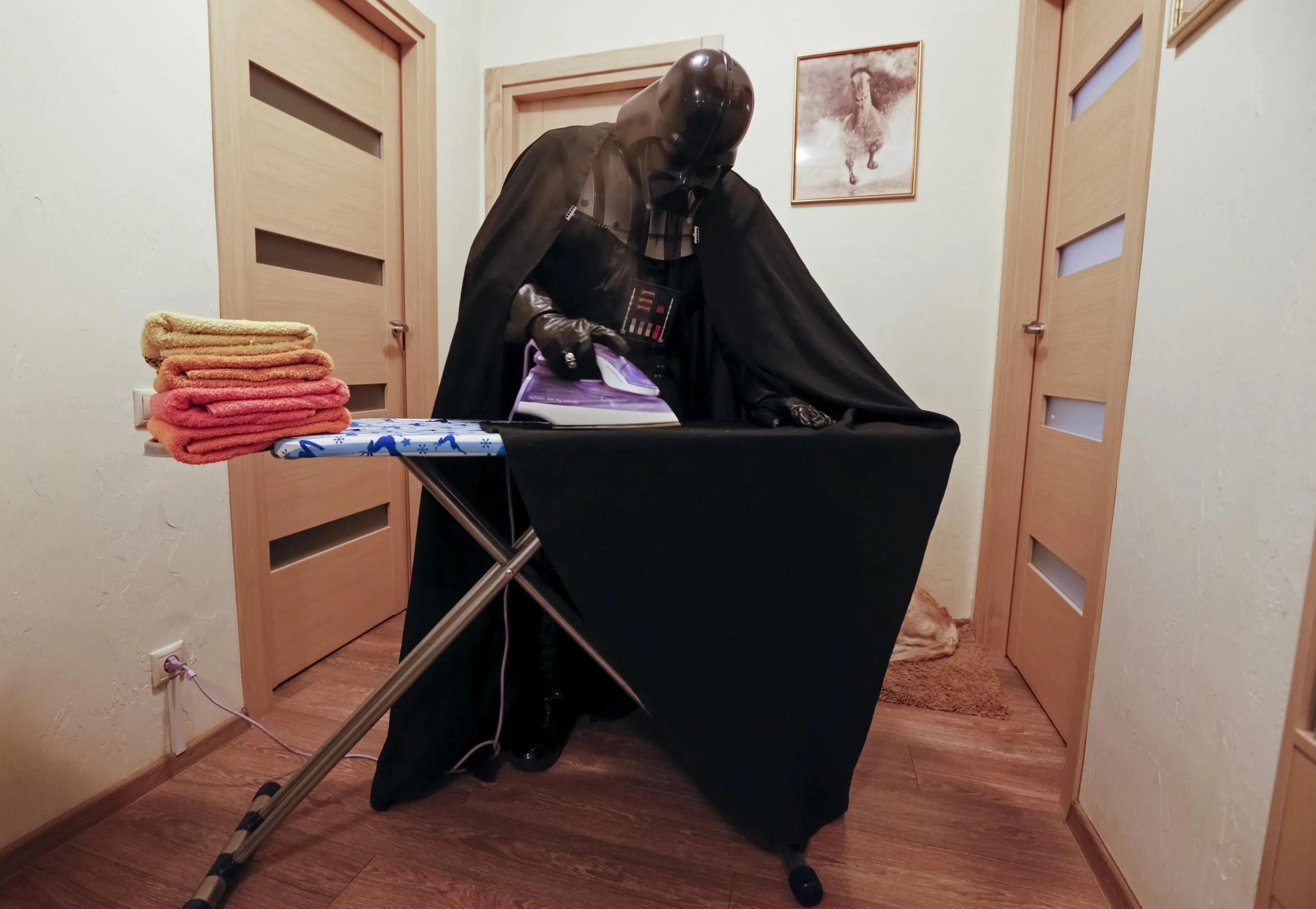 Darth Mykolaiovych Vader, who is dressed as the 'Star Wars' character Darth Vader, poses for a picture as he irons his cloak at his apartments in Odessa, Ukraine, December 2, 2015. (Photo by Valentyn Ogirenko/Reuters)