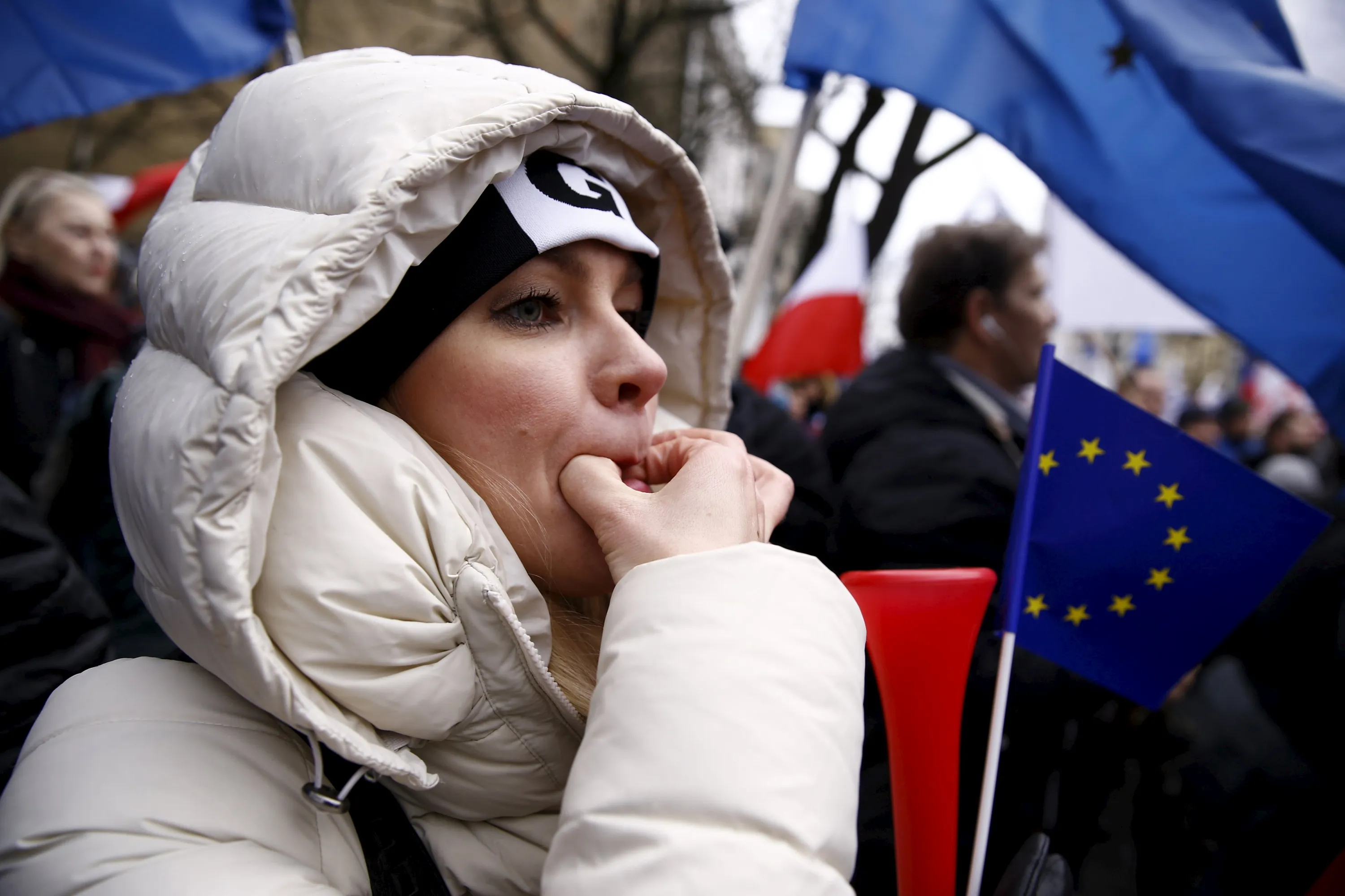 A woman whistles during an anti-government demonstration in front of the Constitutional Court in Warsaw, Poland December 12, 2015. (Photo by Kacper Pempel/Reuters)