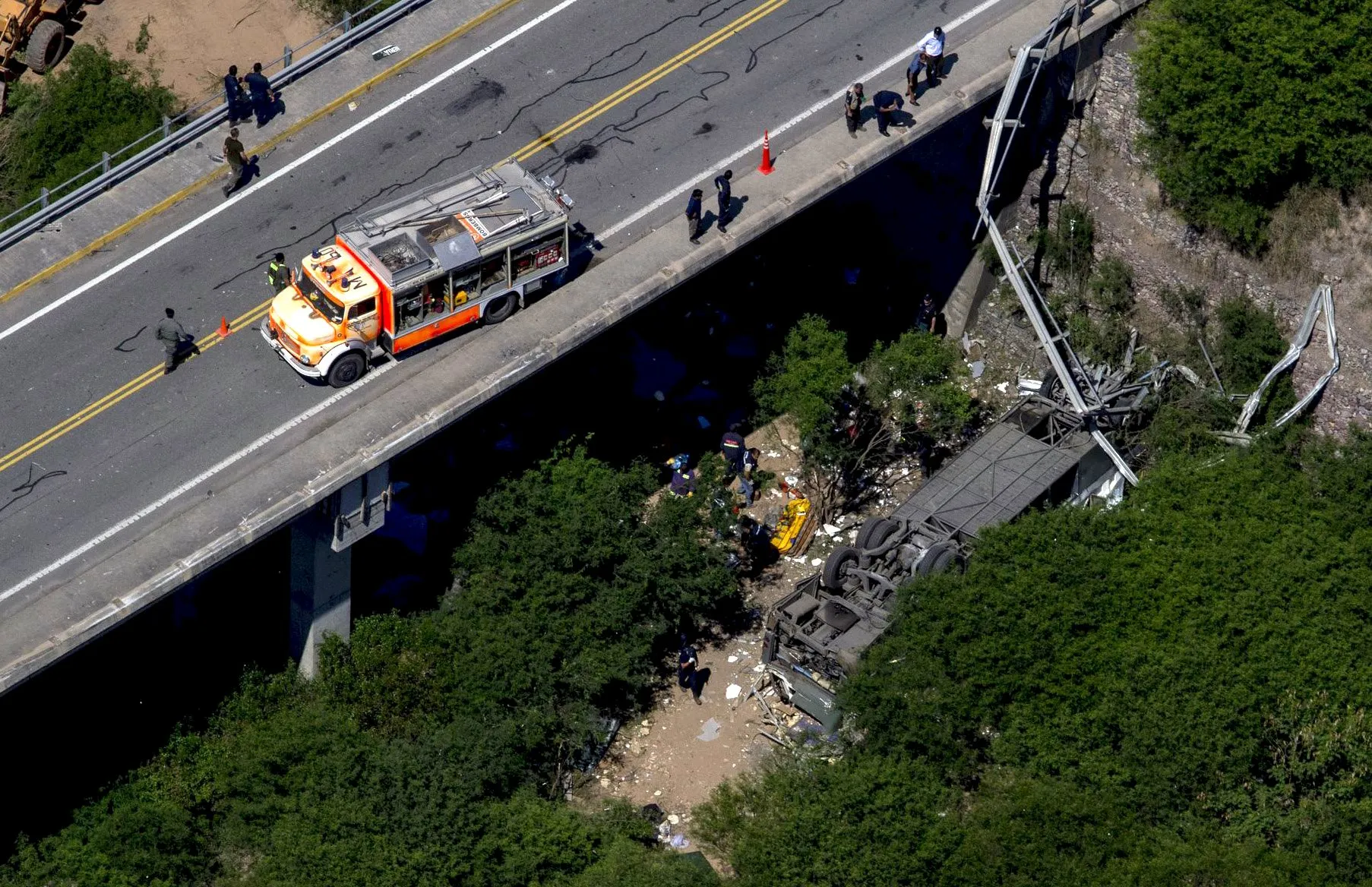 Aerial view of the overturned bus which crashed in Argentina's northern province of Salta, December 14, 2015. A bus carrying Argentine border patrol officers crashed into a ravine in Salta on Monday, killing 42 people, while nine were being treated for injuries, provincial emergency official Francisco Marinaro told local television. (Photo by Javier Corbalan/Reuters)