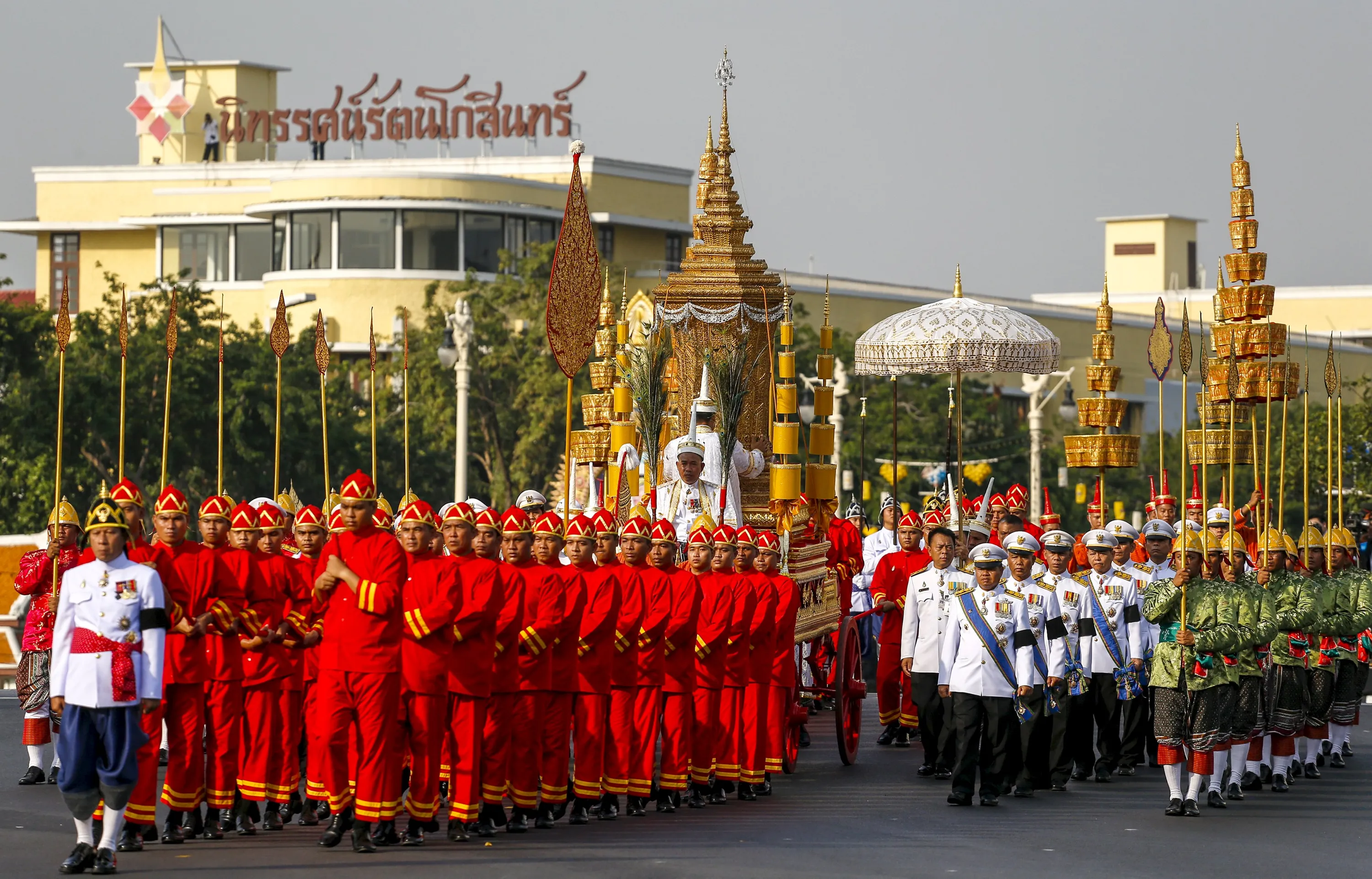 Officials take part in a procession with the royal carriage, containing the remains of Thailand's late Supreme Patriarch, Somdet Phra Nyanasamvara Somdet Phra Sangharaja, during his cremation ceremony in Bangkok, Thailand, December 16, 2015. Thai Buddhists paid their last respects to the country's late Supreme Patriarch, the head of the order of Buddhist monks in Thailand, who died in October 2013 at the age of 100. (Photo by Athit Perawongmetha/Reuters)
