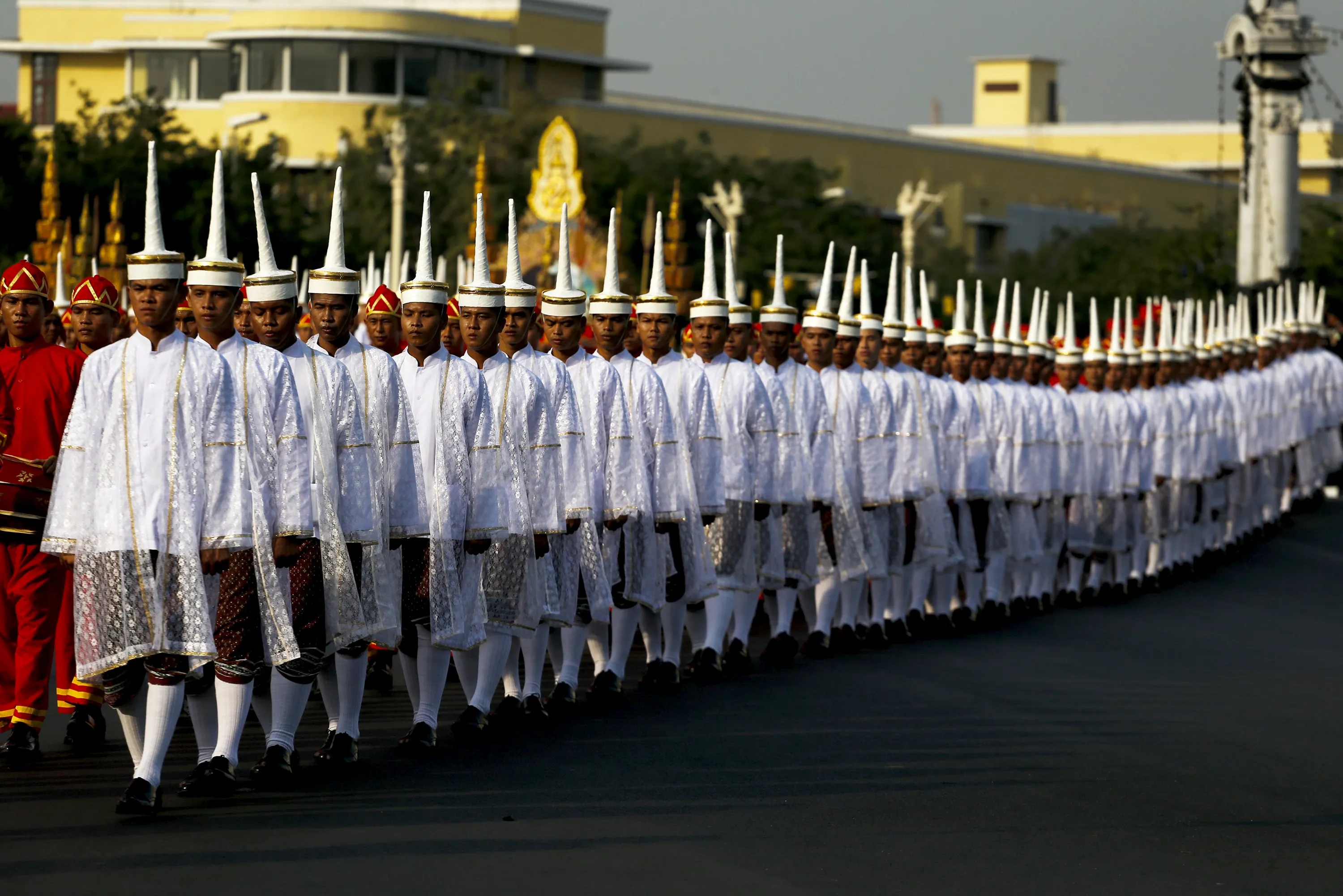 Officials take part in a procession with the royal carriage containing the remains of Thailand's late Supreme Patriarch, Somdet Phra Nyanasamvara Somdet Phra Sangharaja, during his cremation ceremony in Bangkok, Thailand, December 16, 2015. (Photo by Athit Perawongmetha/Reuters)