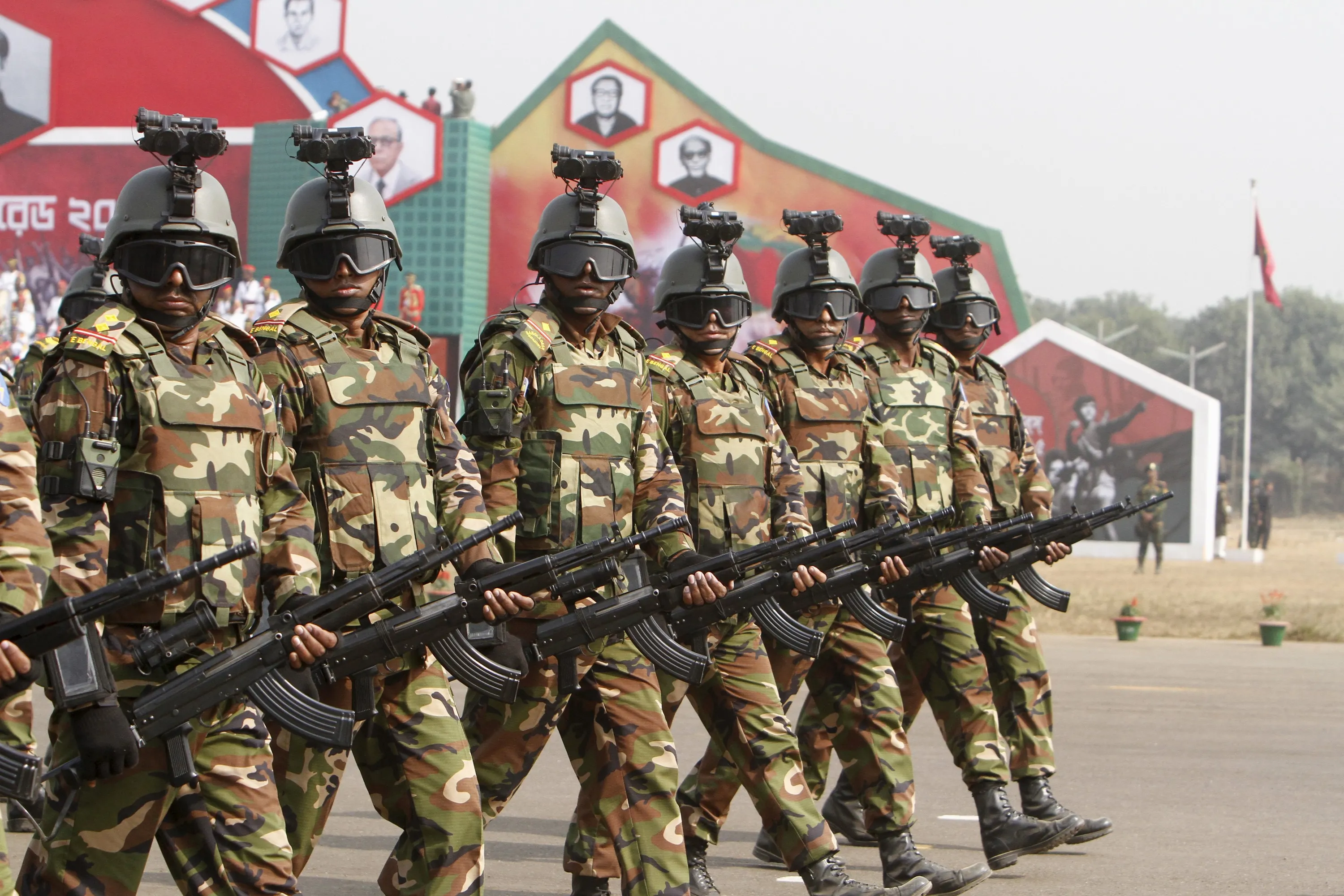Bangladeshi army commandos march past during the celebration of the country’s 45th Victory Day at the national parade ground in Dhaka December 16, 2015. (Photo by Ashikur Rahman/Reuters)