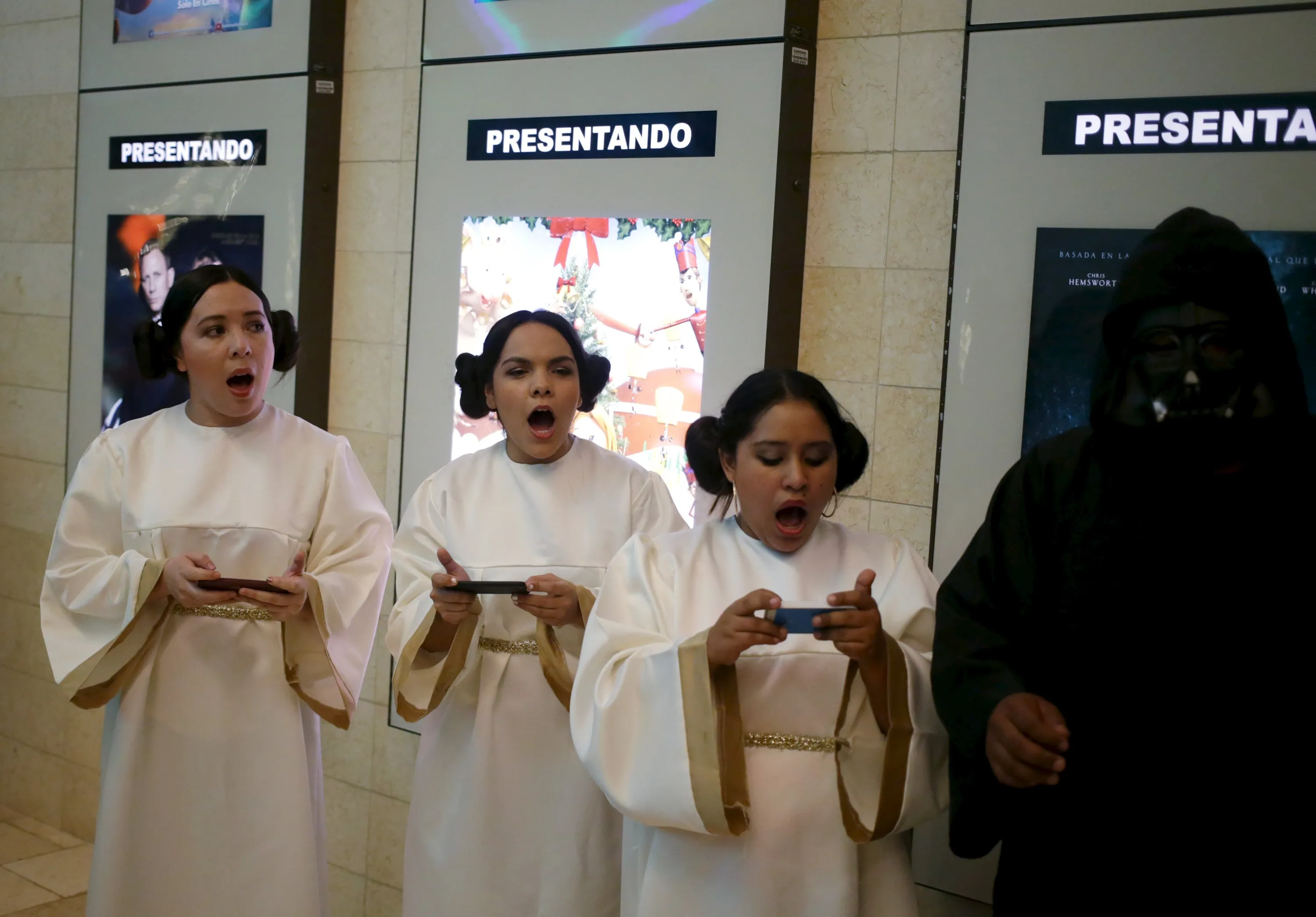 Characters from Star Wars sing the soundtrack of the movie during an event held for the release of the film "Star Wars: The Force Awakens" at a movie theater in Guatemala City, December 16, 2015. (Photo by Jorge Dan Lopez/Reuters)