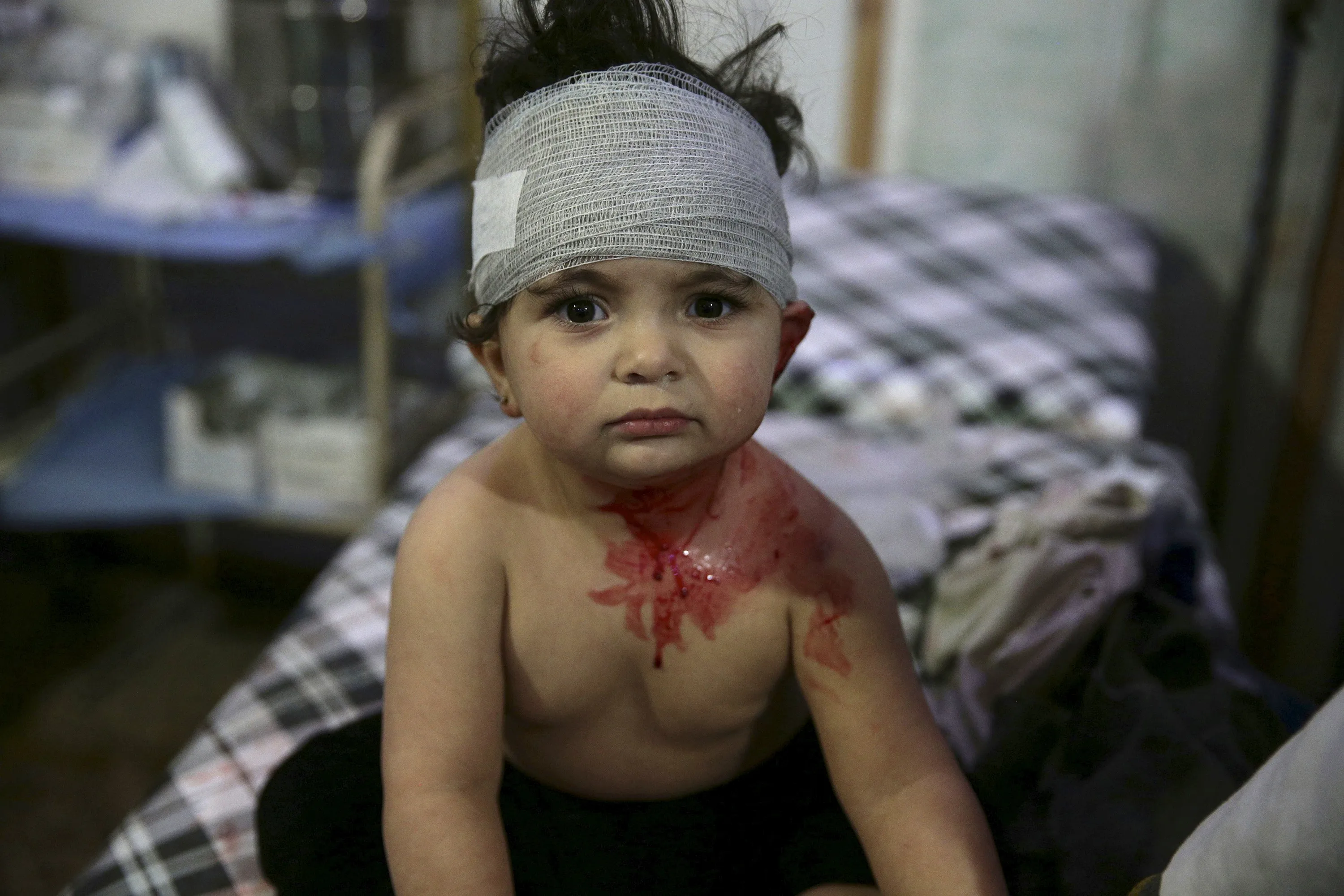An injured child sits inside a field hospital, after what activists said was shelling by forces loyal to Syria's President Bashar al-Assad, in the Douma neighborhood of Damascus, Syria November 29, 2015. (Photo by Bassam Khabieh/Reuters)