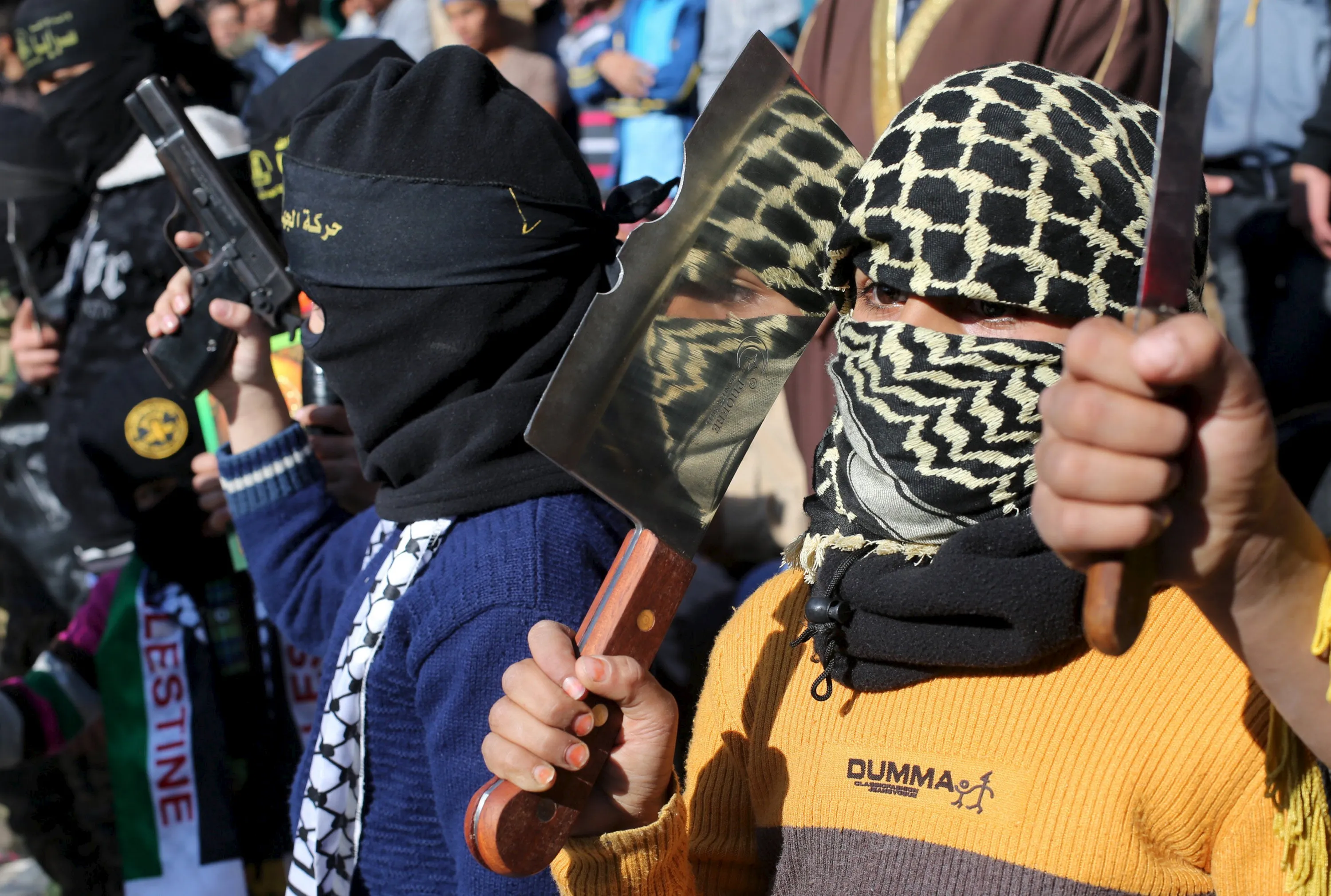 A masked Palestinian boy holds a chopper during a rally organized by Islamic Jihad in Rafah in the southern Gaza Strip December 18, 2015, in support of what organizers said is a Palestinian uprising against Israel. (Photo by Ibraheem Abu Mustafat/Reuters)