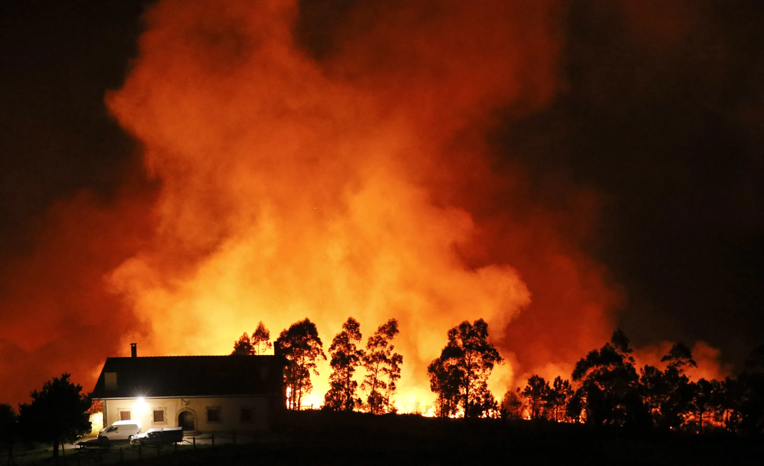 General view of the fire at Igueldo Hill in San Sebastian, Basque Country, Spain on December 19, 2015. According to local authorities 50 hectares have burnt. (Photo by Juan Herrero/EPA)