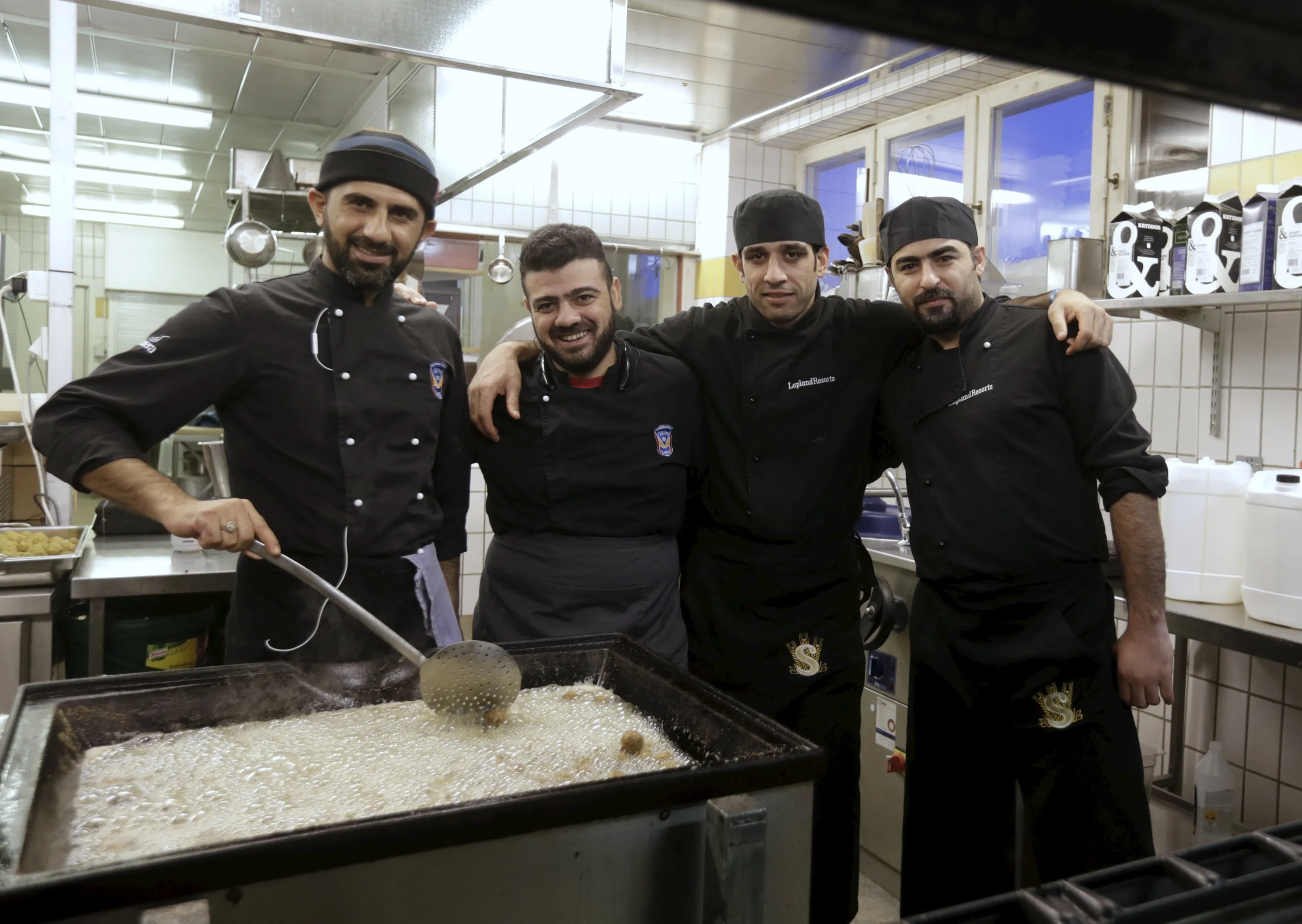 Chief assistants, refugees Wela al-Sumari (L to R), Ali Husein, Mogdad Ajad and Wacl al-Shater, pose for a picture in kitchen in their camp at a hotel touted as the world's most northerly ski resort in Riksgransen, Sweden, December 15, 2015. (Photo by Ints Kalnins/Reuters)