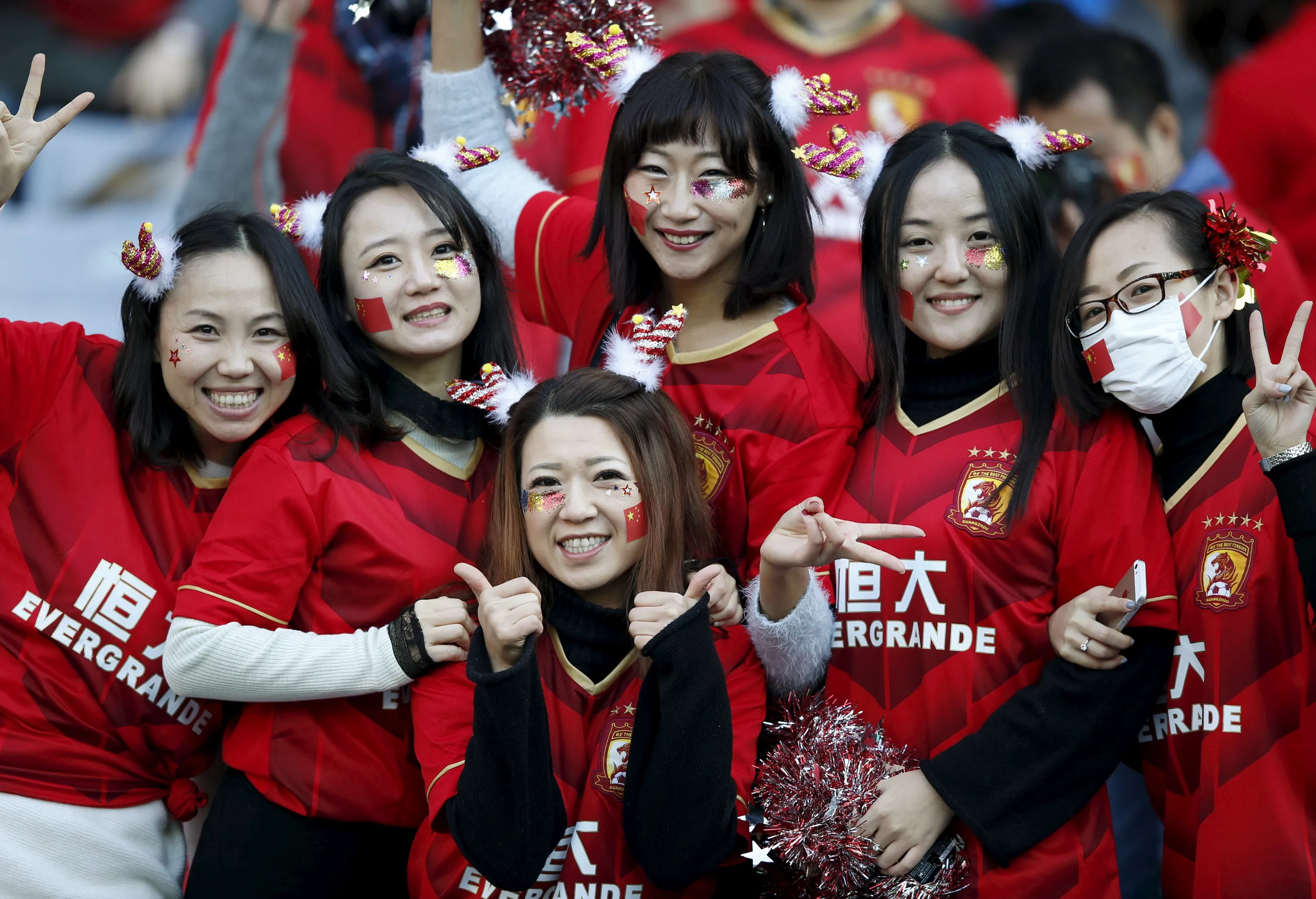 Supporters of China's Guangzhou Evergrande pose for a photograph as they cheer for the team before their Club World Cup third-place soccer match agsinst Japan's Sanfrecce Hiroshima in Yokohama, south of Tokyo, Japan, December 20, 2015. (Photo by Toru Hanai/Reuters)