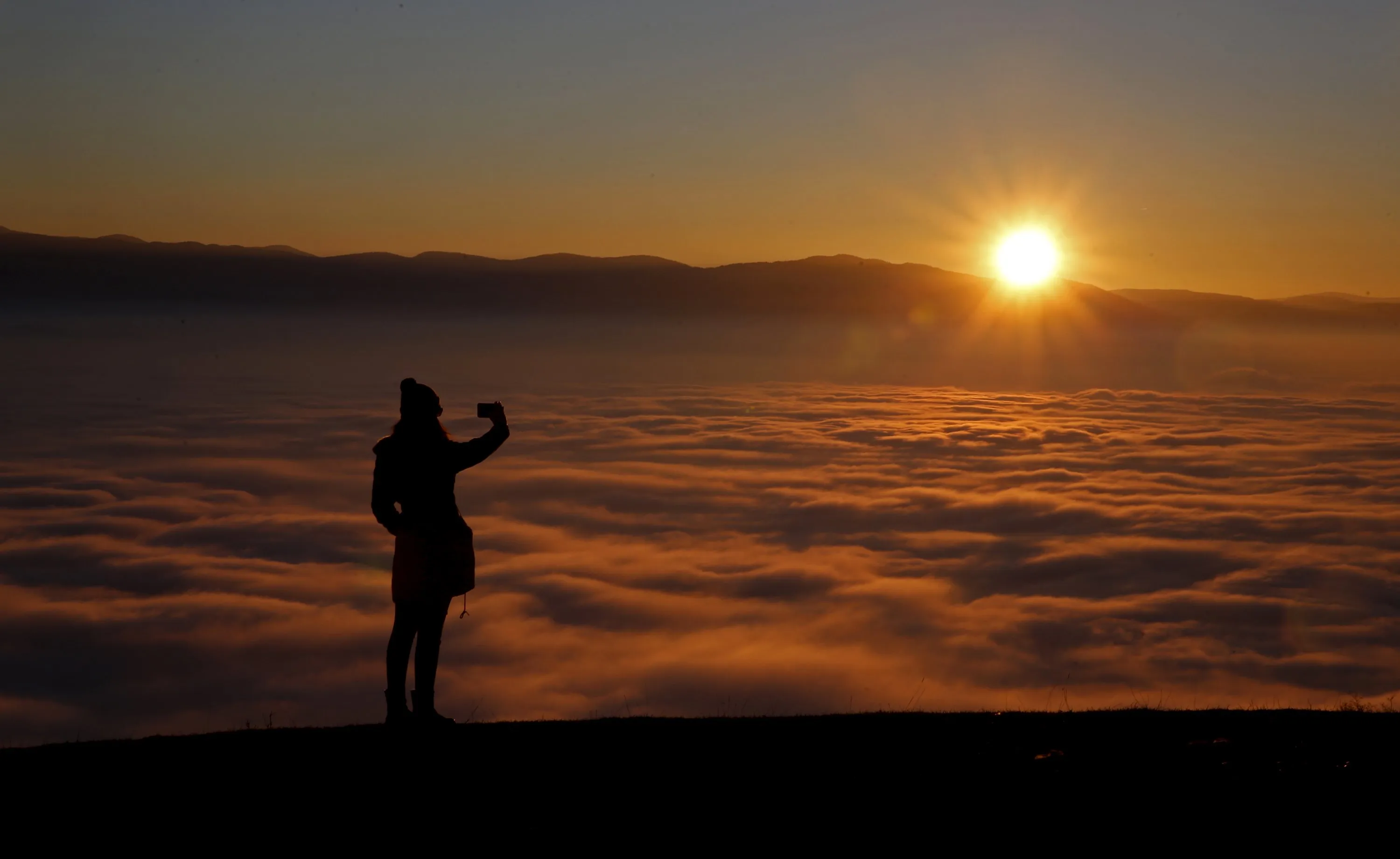 A woman takes a picture with a smartphone on the Smetovi mountain range near Zenica, Bosnia and Herzegovina, December 20, 2015. (Photo by Dado Ruvic/Reuters)