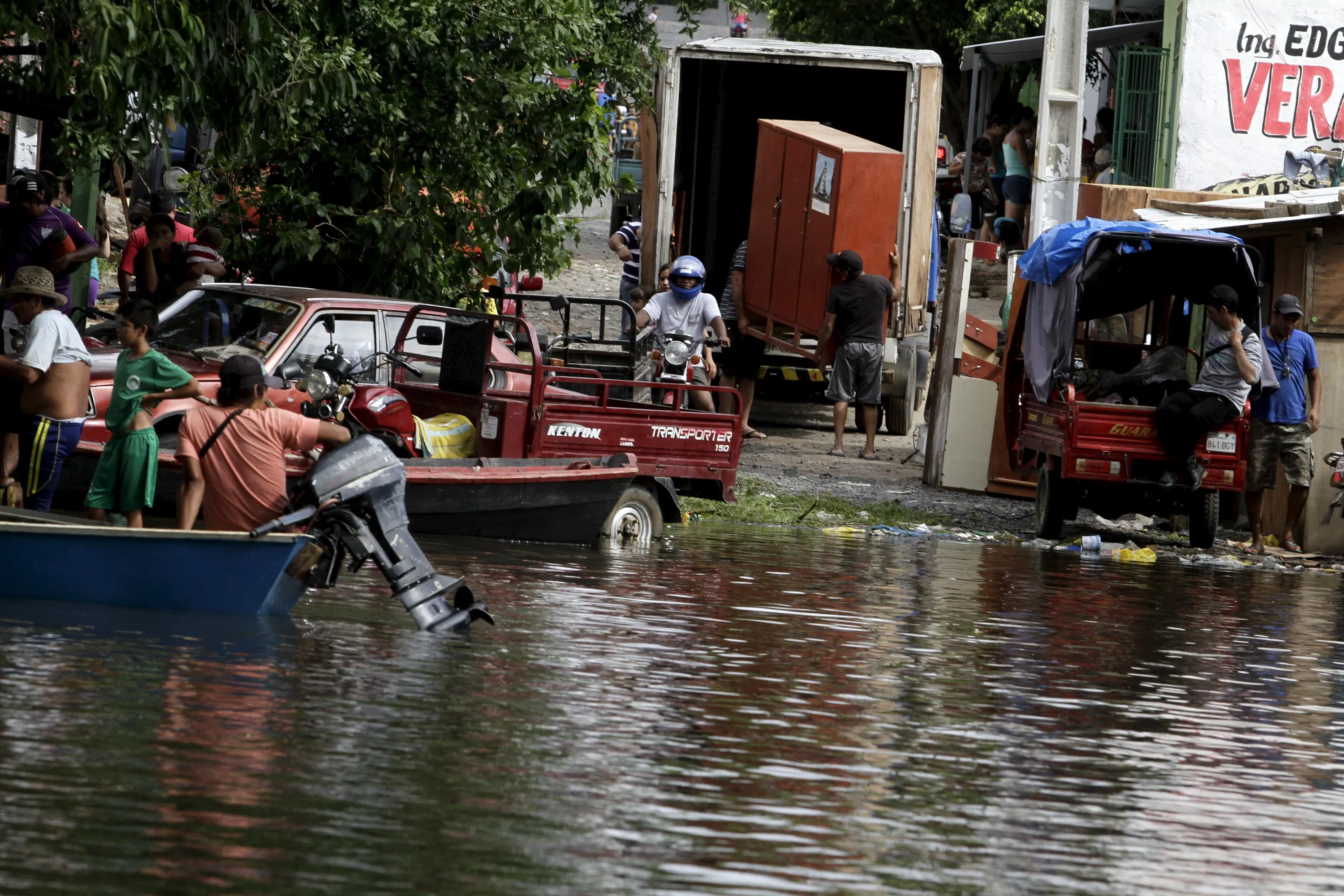 Paraguayans remove their belongings from their flooded houses near the Paraguay river in Asuncion, December 20, 2015. (Photo by Jorge Adorno/Reuters)