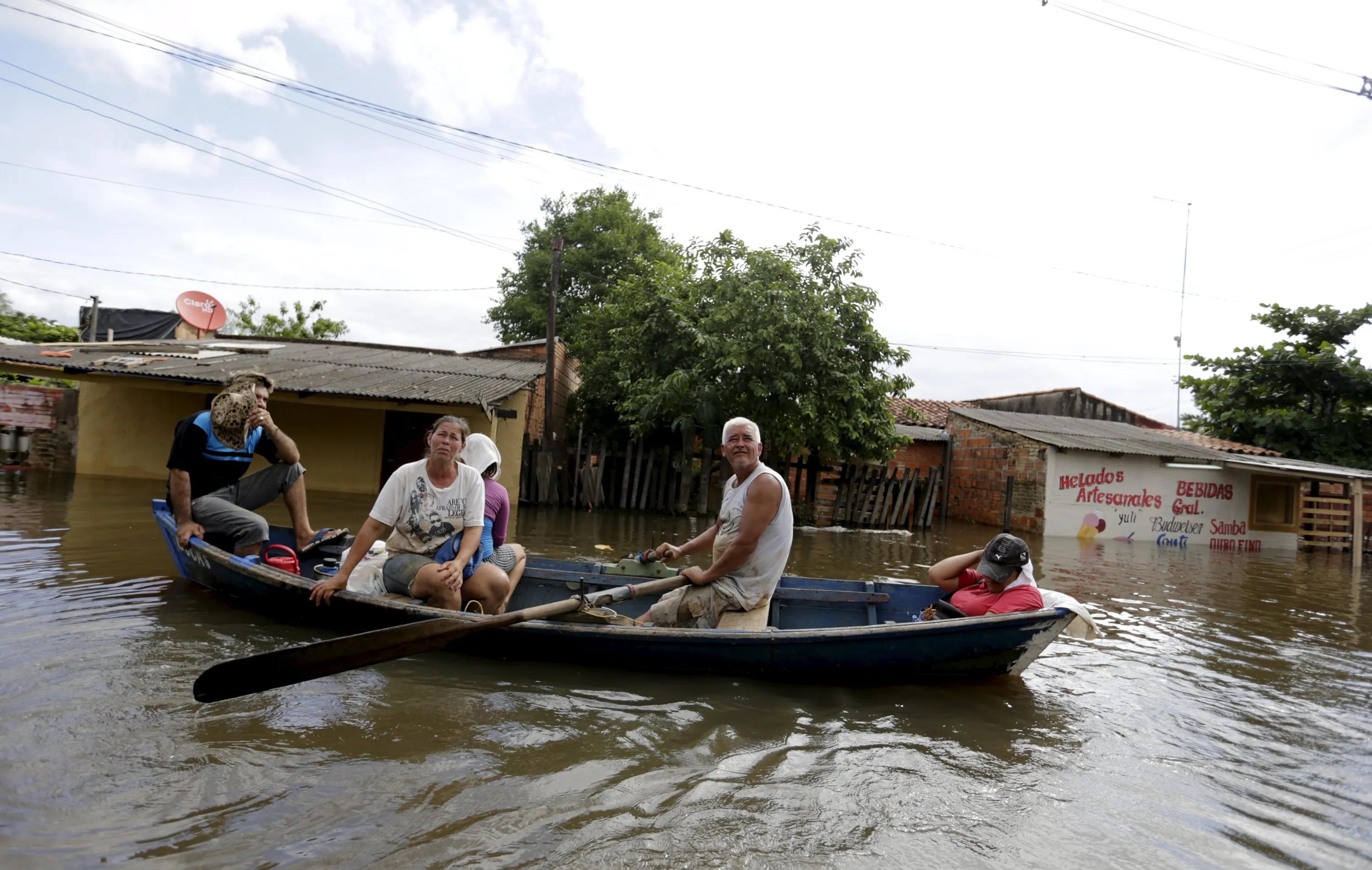 Men travel on a boat near flood-affected houses in Asuncion, December 20, 2015. (Photo by Jorge Adorno/Reuters)