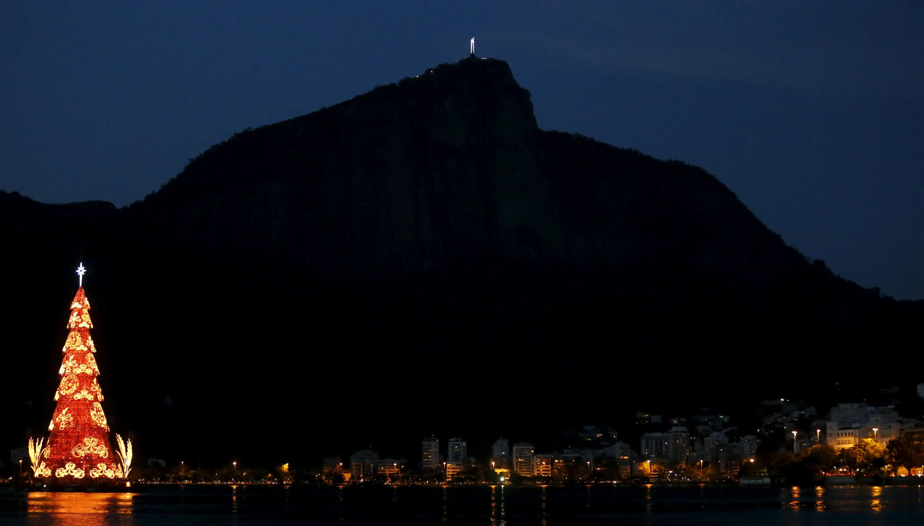 A Christmas tree is pictured at Rodrigo de Freitas Lagoon in Rio de Janeiro, Brazil, December 15, 2015. (Photo by Sergio Moraes/Reuters)