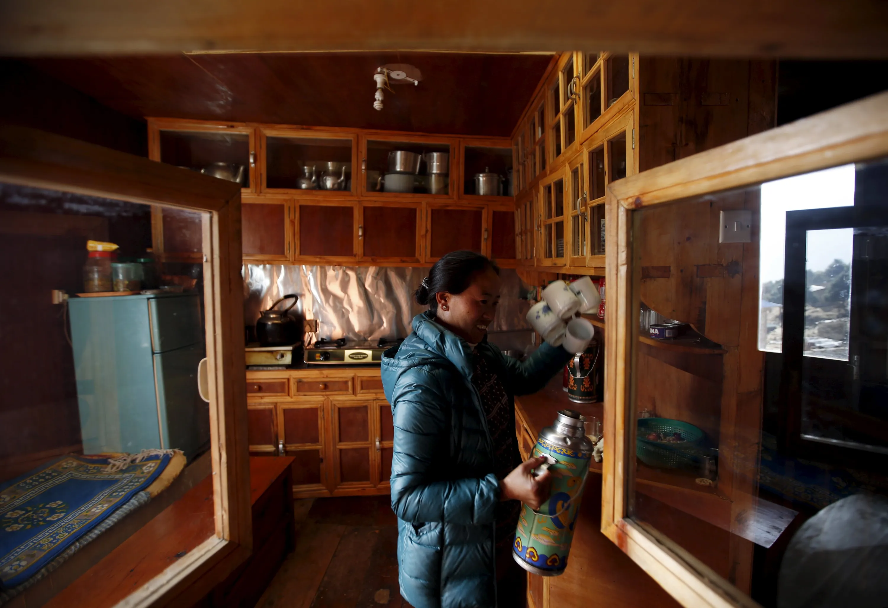 Maya Sherpa works inside the kitchen of her newly-built house after the earthquake earlier this year destroyed her home in Solukhumbu district, also known as the Everest region, in this picture taken November 29, 2015. (Photo by Navesh Chitrakar/Reuters)