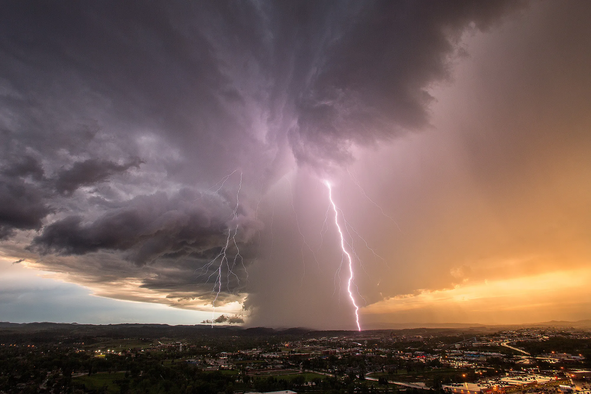 A decaying supercell hovers over the Rapid City, South Dakota area, dropping rain and lightning bolts. on June 1, 2015 in South Dakota, United States. (Photo by Mike Olbinski/Barcroft Media)