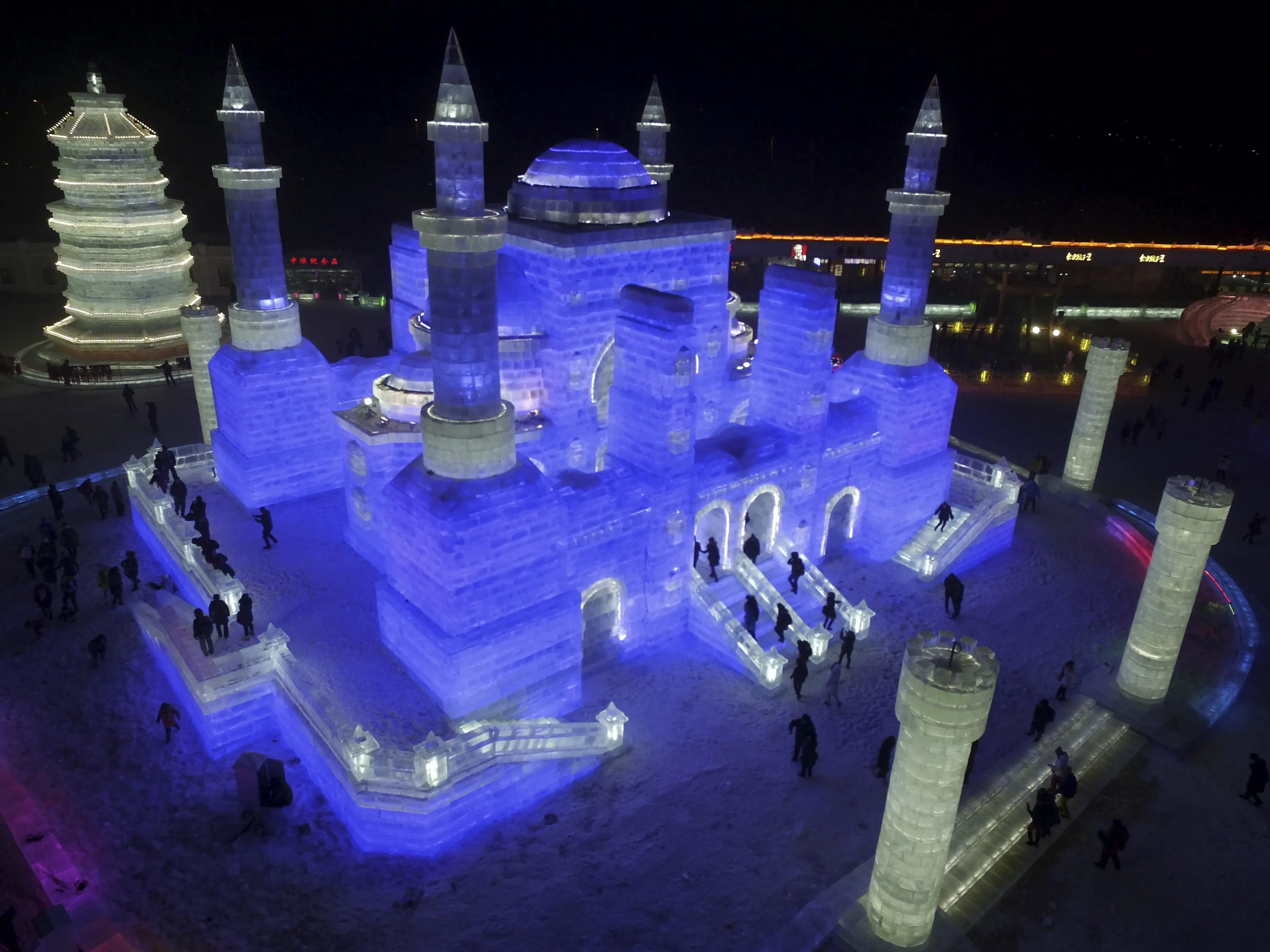 Visitors tour the Ice and Snow World in Harbin in northeastern China's Heilongjiang province on Tuesday December 22, 2015, the night of the soft opening of the annual tourist attraction. (Photo by Chinatopix via AP Photo)