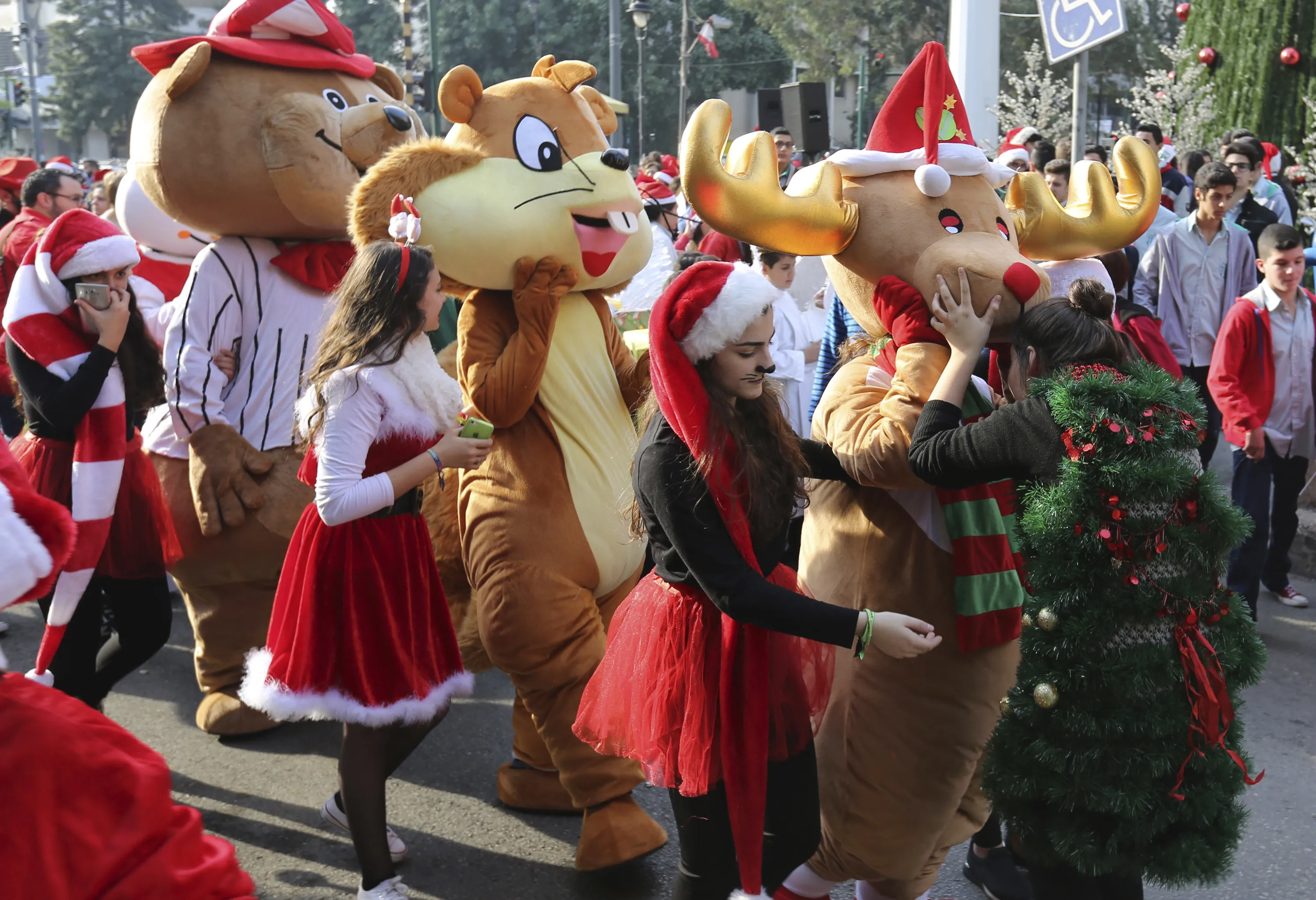 Students wearing festive costumes take part in a Christmas parade in Beirut, Lebanon, December 22, 2015. (Photo by Aziz Taher/Reuters)