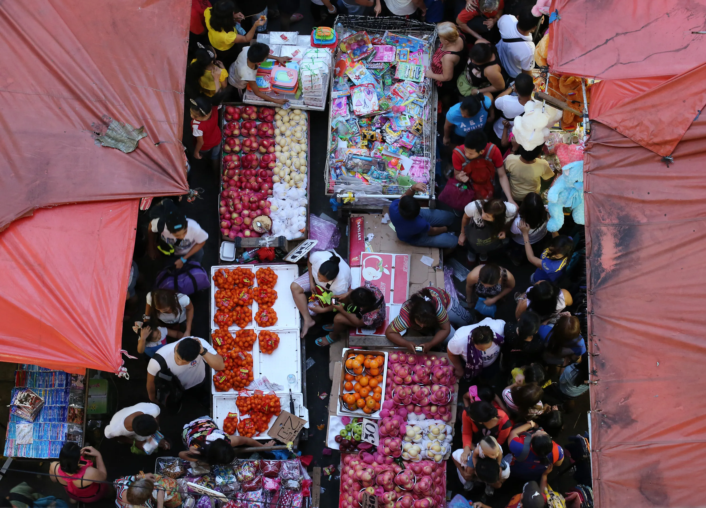 Filipino vendors sells fruits and toys as people shop for Christmas gifts in downtown Manila, Philippines on Wednesday, December 23, 2015. Christmas is one of the most important holidays in this predominantly Roman Catholic nation. (Photo by Aaron Favila/AP Photo)