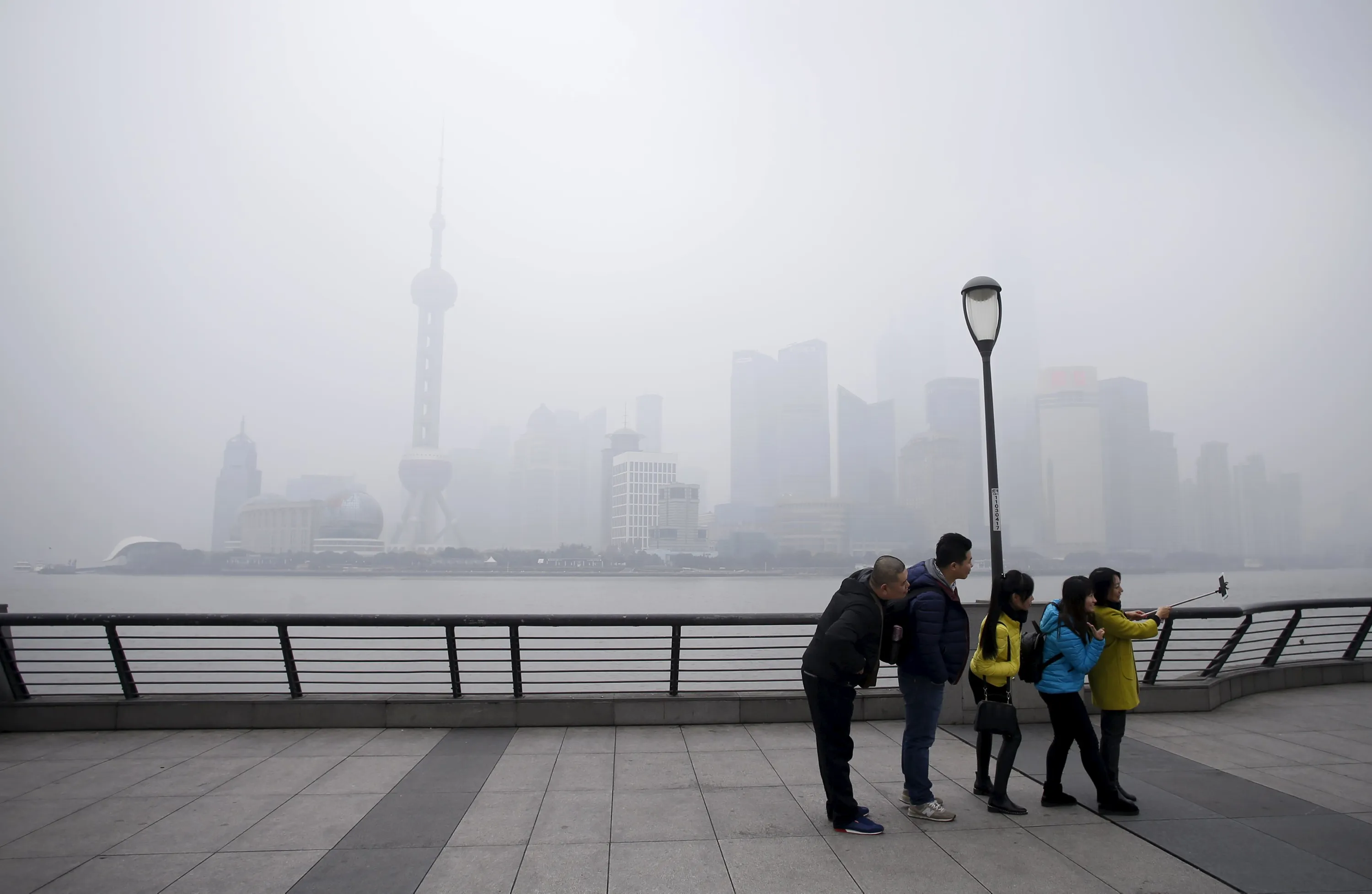 Tourists take selfies at the bund as the financial district of Pudong (rear) is seen amid heavy smog, in Shanghai, China, December 11, 2015. (Photo by Aly Song/Reuters)