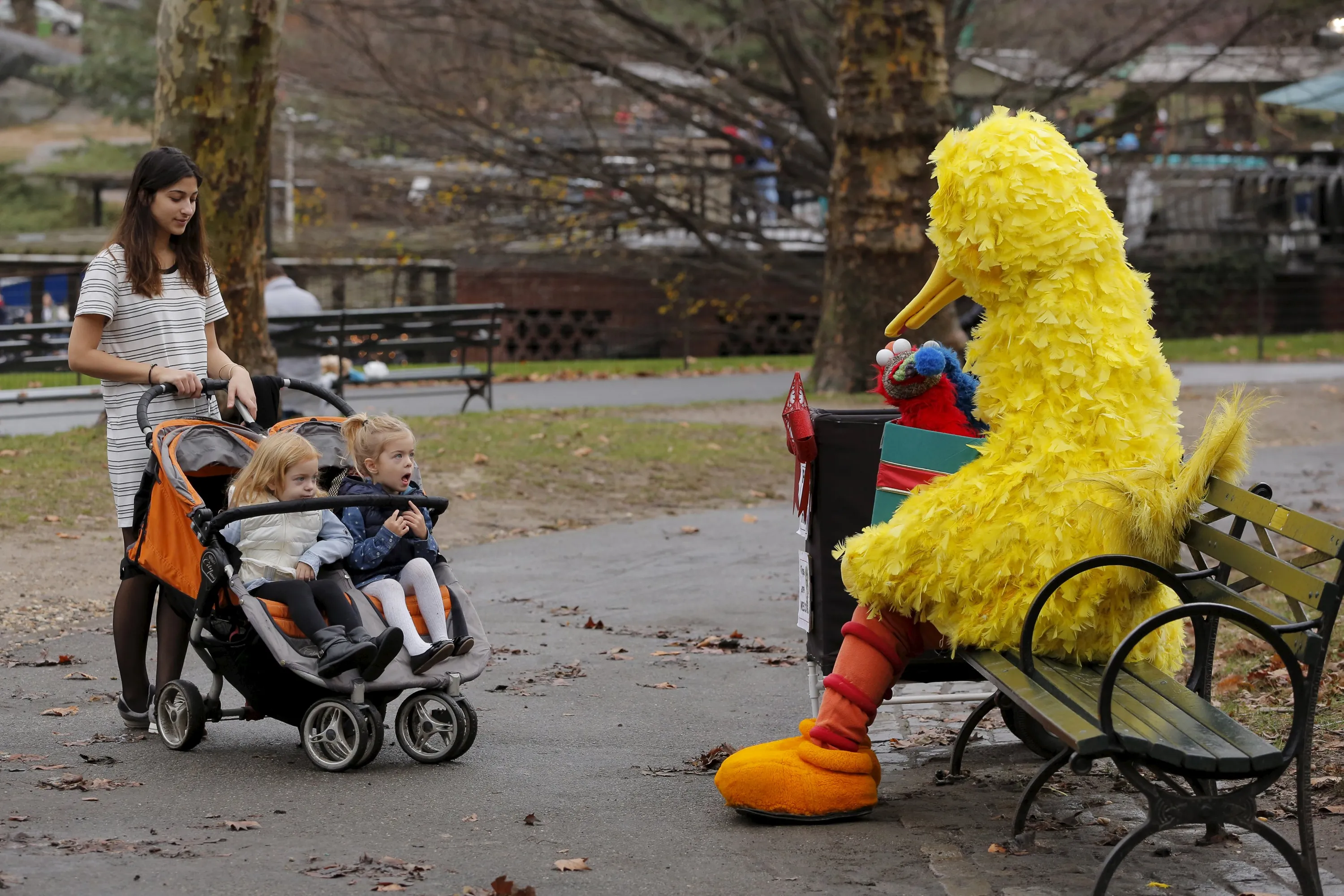 Pedestrians stop to listen to a street performer dressed as Big Bird in Central Park during an unseasonably warm day in New York December 24, 2015. (Photo by Lucas Jackson/Reuters)