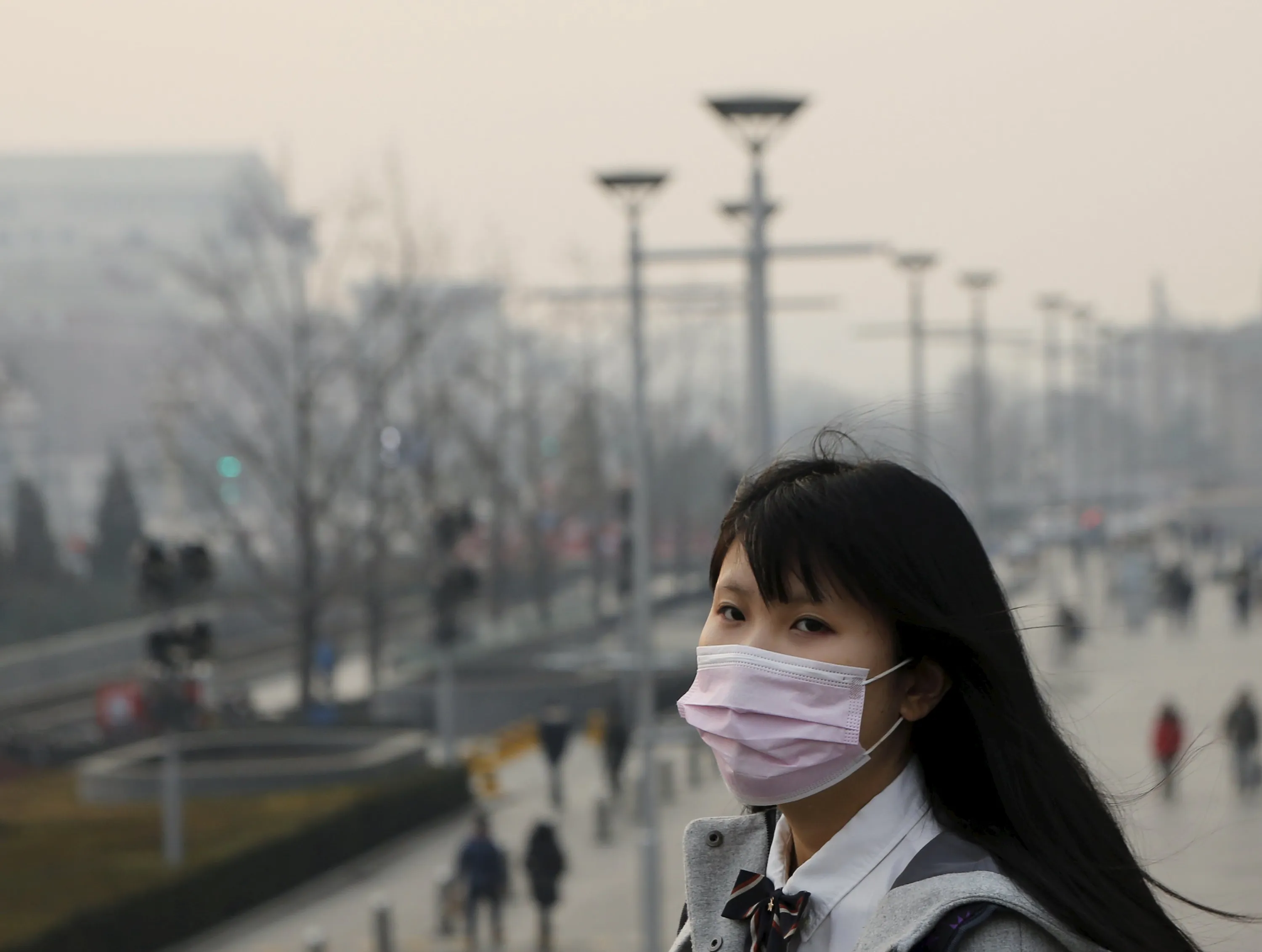 A school girl wearing a protective mask makes her way in a shopping district as China's capital Beijing braces for four days of choking smog starting Saturday, in Beijing, China, December 19, 2015. (Photo by Kim Kyung-Hoon/Reuters)