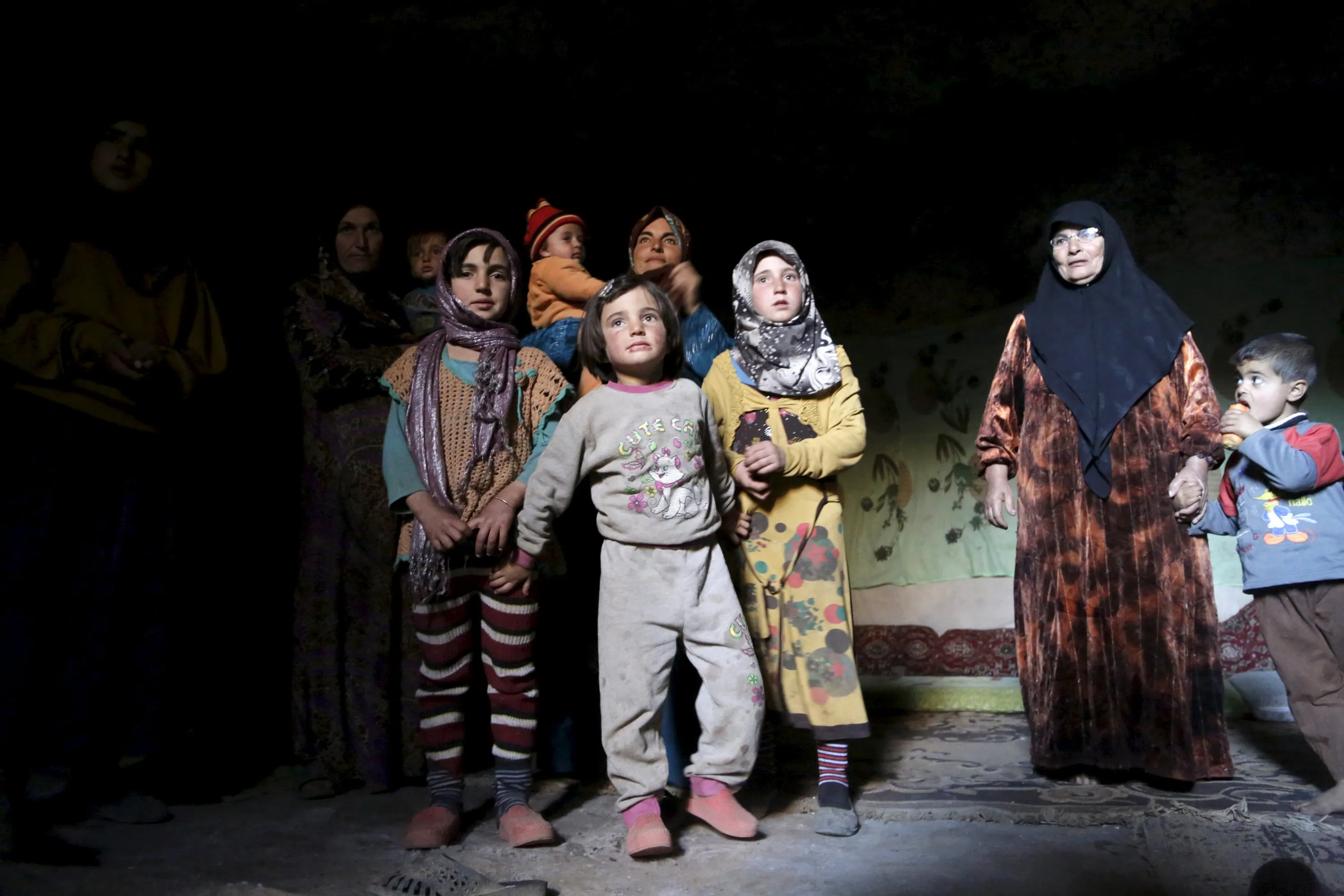 Internally displaced Syrians stand inside their makeshift shelter that is an underground cave in Om al-Seer, southern Idlib countryside, Syria December 26, 2015. (Photo by Khalil Ashawi/Reuters)