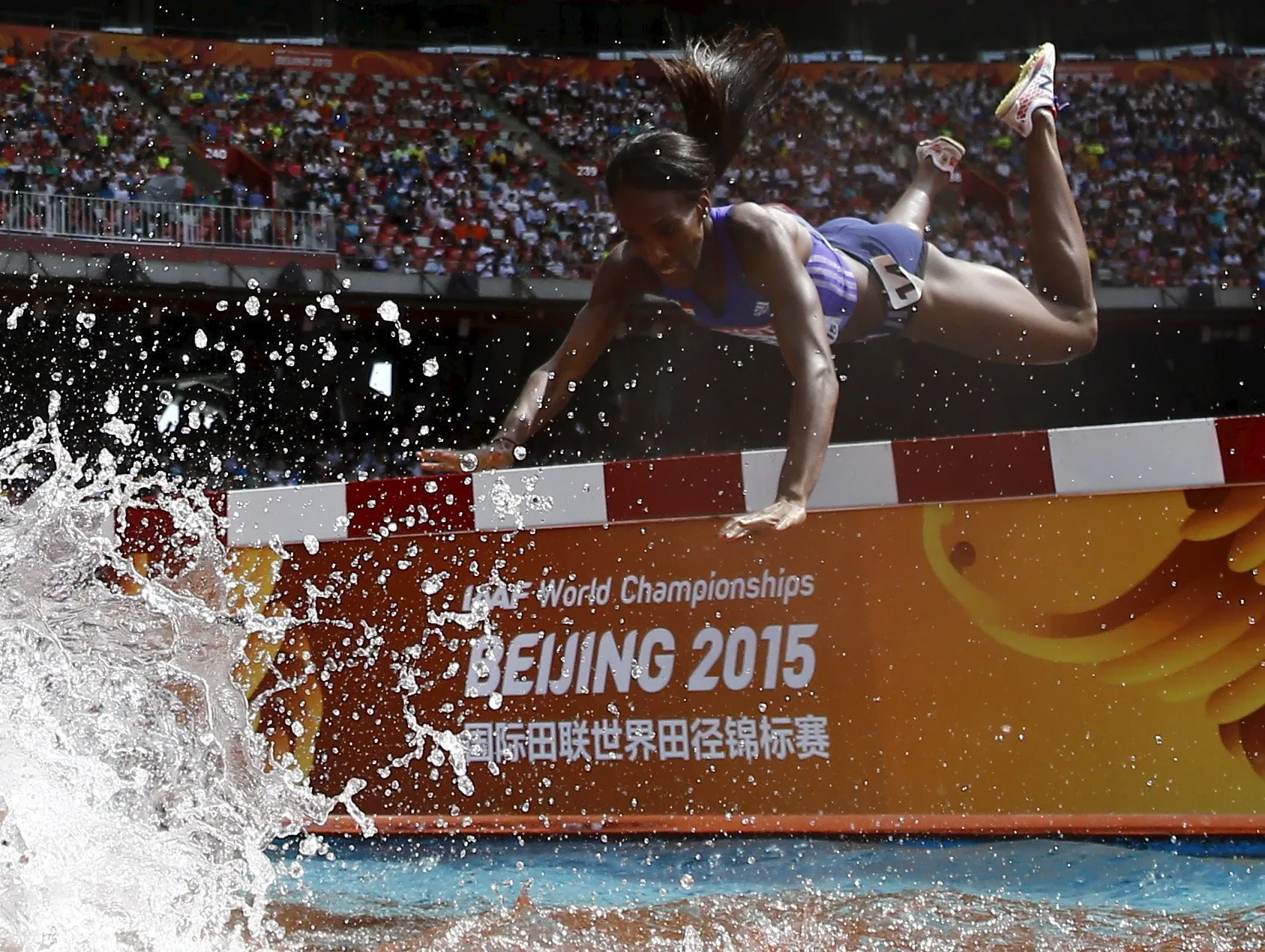 Rolanda Bell of Panama falls head first into the water obstacle during the women's 3000 metres steeplechase heats at the 15th IAAF World Championships in the National Stadium in Beijing, China August 24, 2015. (Photo by Kai Pfaffenbach/Reuters)