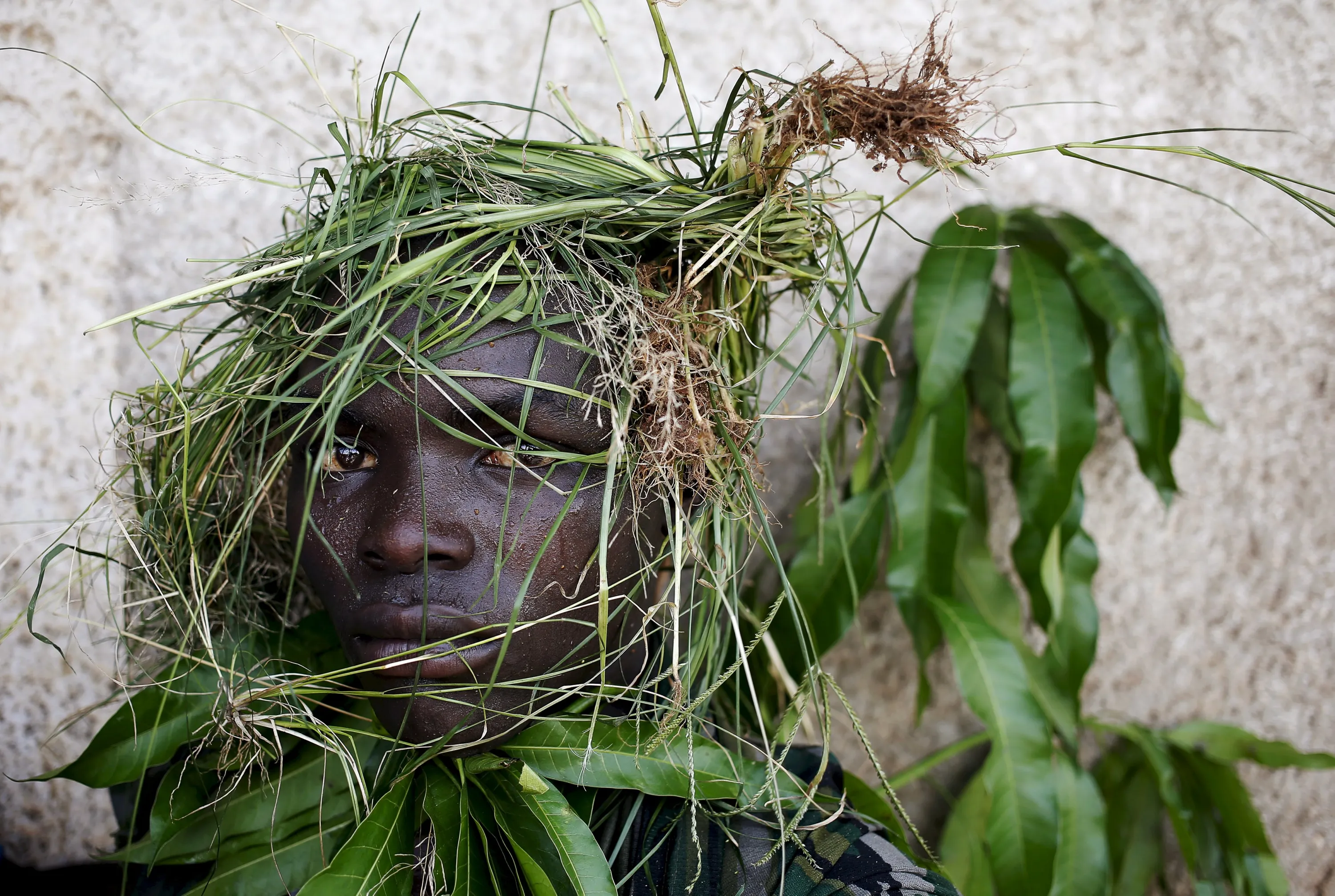 A protester wears grass around his face to obscure his identity during a protest against President Pierre Nkurunziza's decision to run for a third term, in Bujumbura, Burundi, May 11, 2015. (Photo by Goran Tomasevic/Reuters)