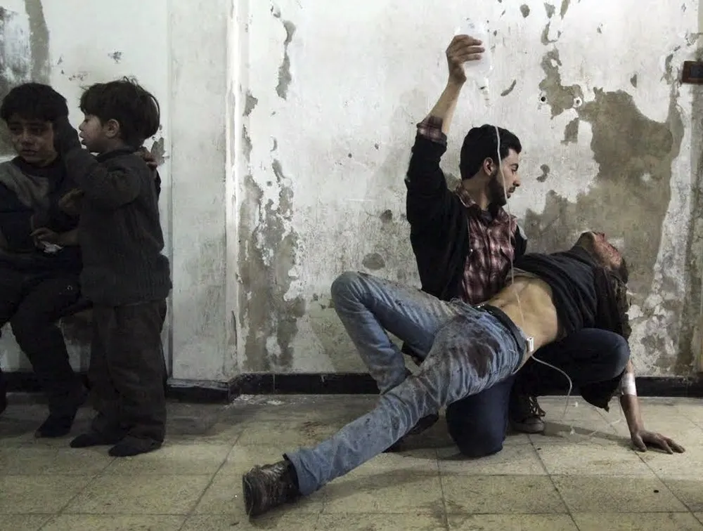 A man gives medical assistance to an injured man as two wounded children wait nearby at a field hospital after what activists said was an air strike by forces of Syria's President Bashar al-Assad in the Duma neighborhood of Damascus, February 2, 2015. REUTERS/Mohammed Badra
