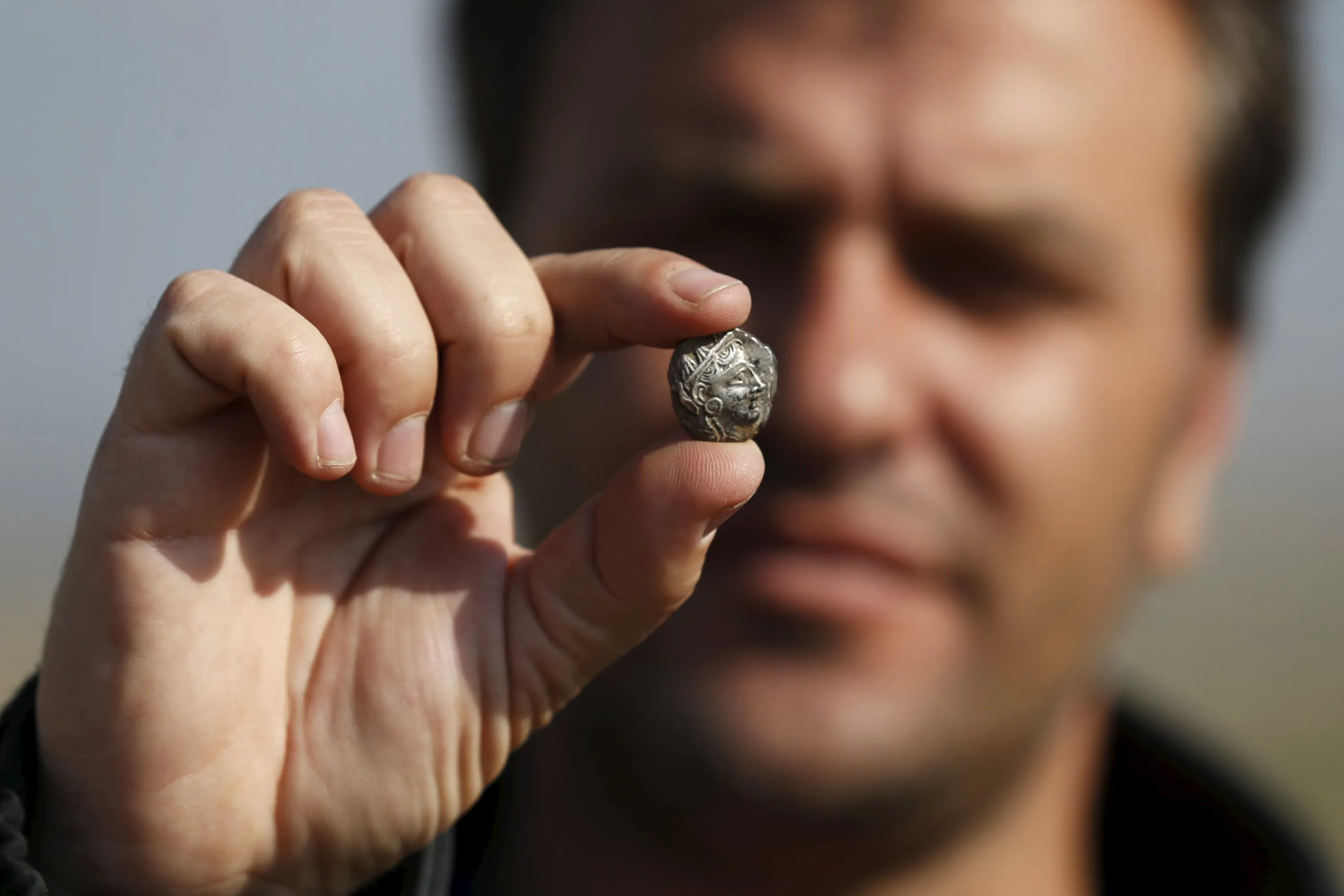 An Israel Antiquities Authority (IAA) employee holds a coin found during excavations in Rosh Ha'ayin, east of Tel Aviv, Israel December 30, 2015. (Photo by Baz Ratner/Reuters)