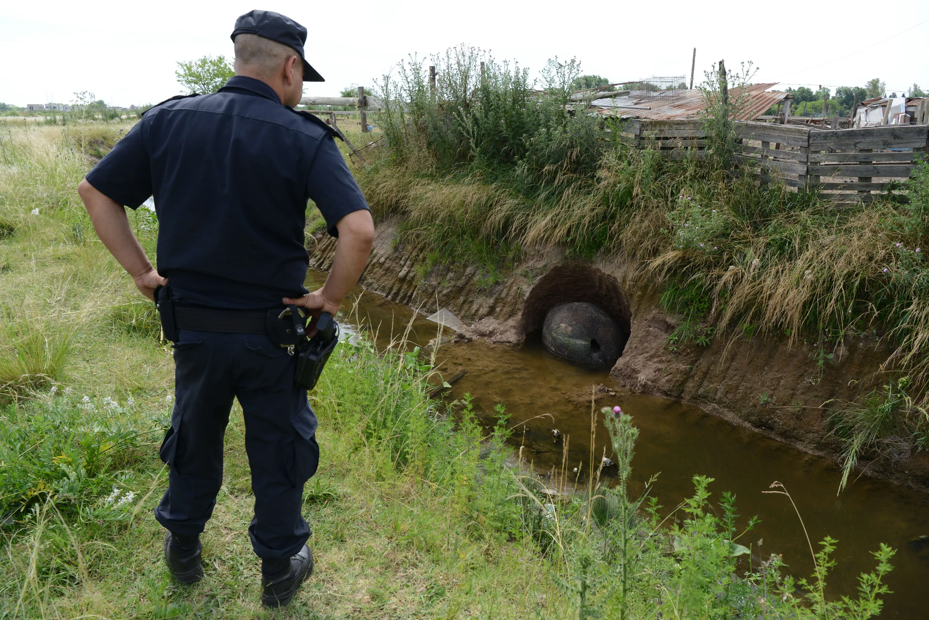 A policeman looks at a glyptodont shell found in Carlos Spegazzini, Buenos Aires Province, Argentina, on December 29, 2015. (Photo by Eitan Abramovich/AFP Photo)