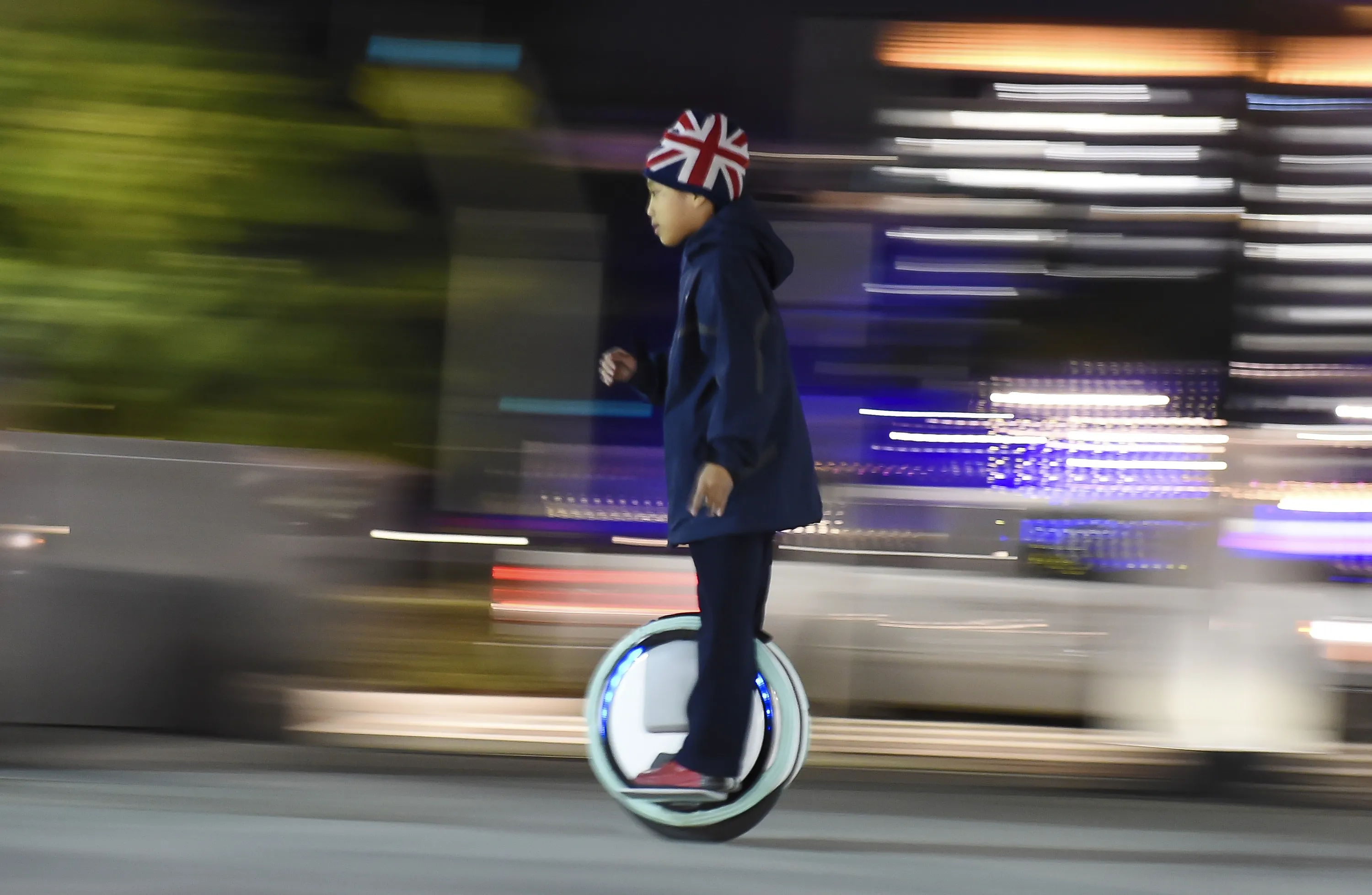 Nine-year-old Rayen Koan rides his Ninebot one-wheel self-balancing scooter, in downtown Los Angeles, California December 30, 2015. (Photo by Robyn Beck/AFP Photo)