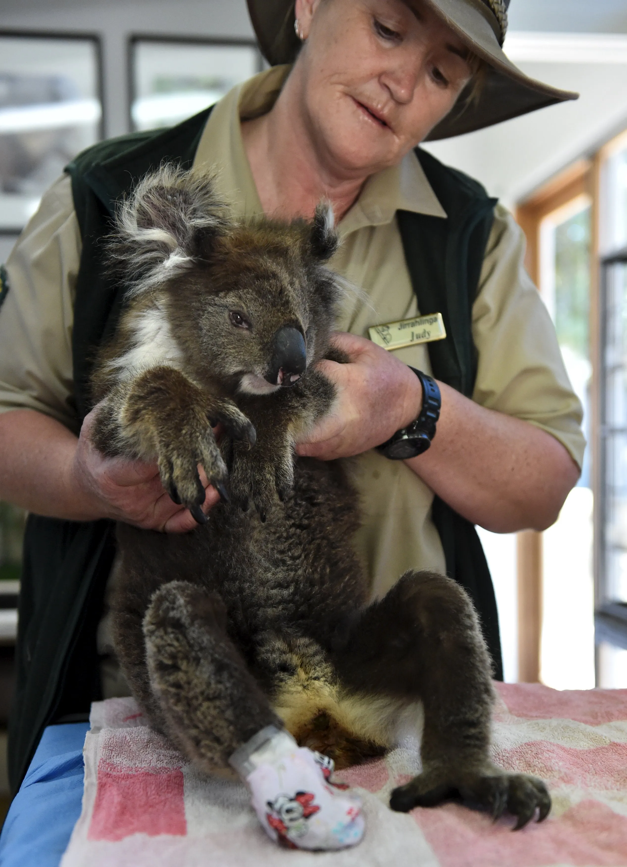 A female koala is assisted by Judy O'Brien at Jirrahlinga Koala and Wildlife Sanctuary at Barwon Heads, south of Melbourne, December 28, 2015. (Photo by Julian Smith/Reuters/AAP)