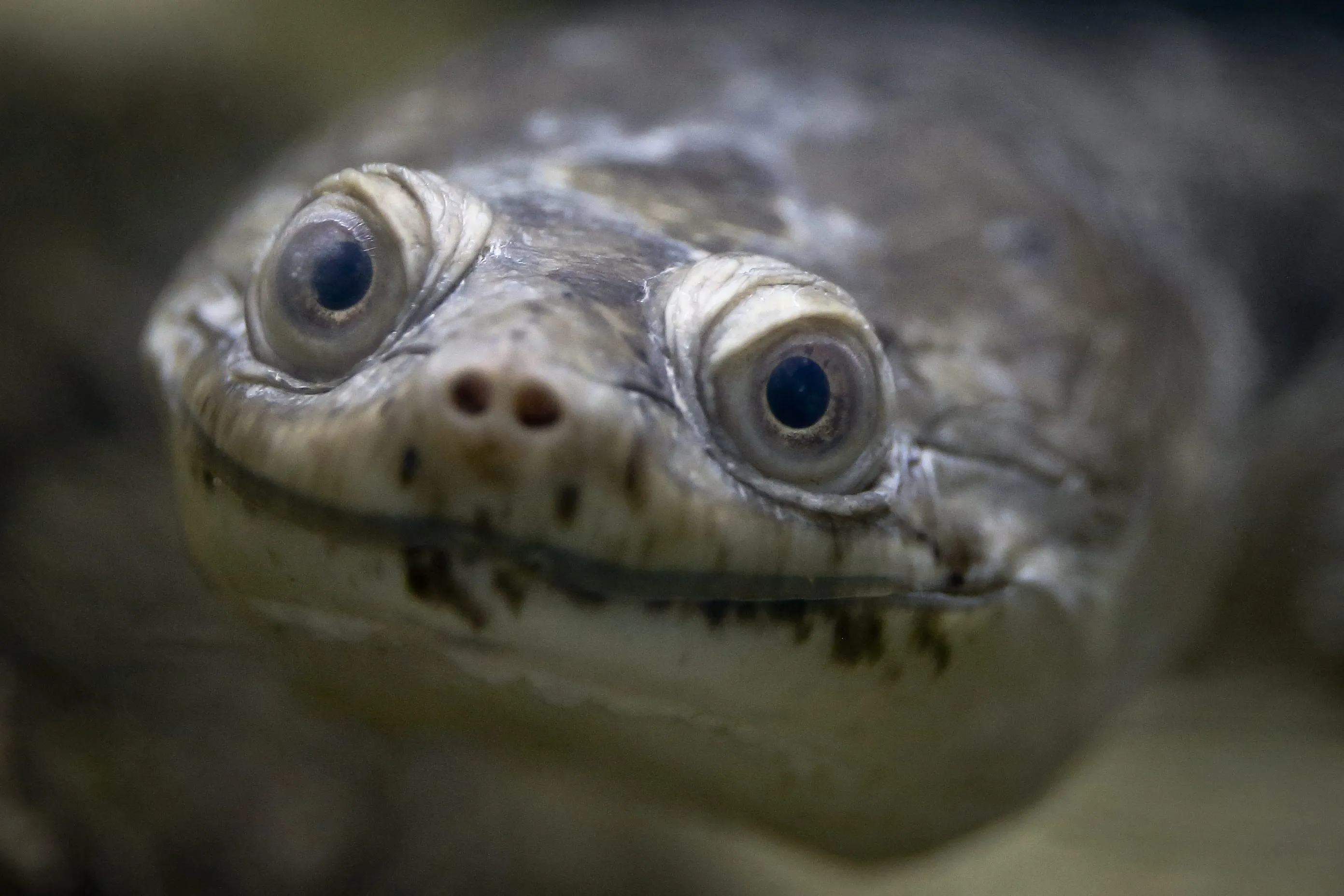 A long-necked turtle looks through the glass of its enclosure at the Pata Zoo located on the top floor of a shopping center in Bangkok, Thailand, 29 December 2015. Native to Australia, New Guinea, Indonesia and East Timor, the long-necked turtle is a fish eater, and can reach up to 45 cm in length. (Photo by Diego Azubel/EPA)