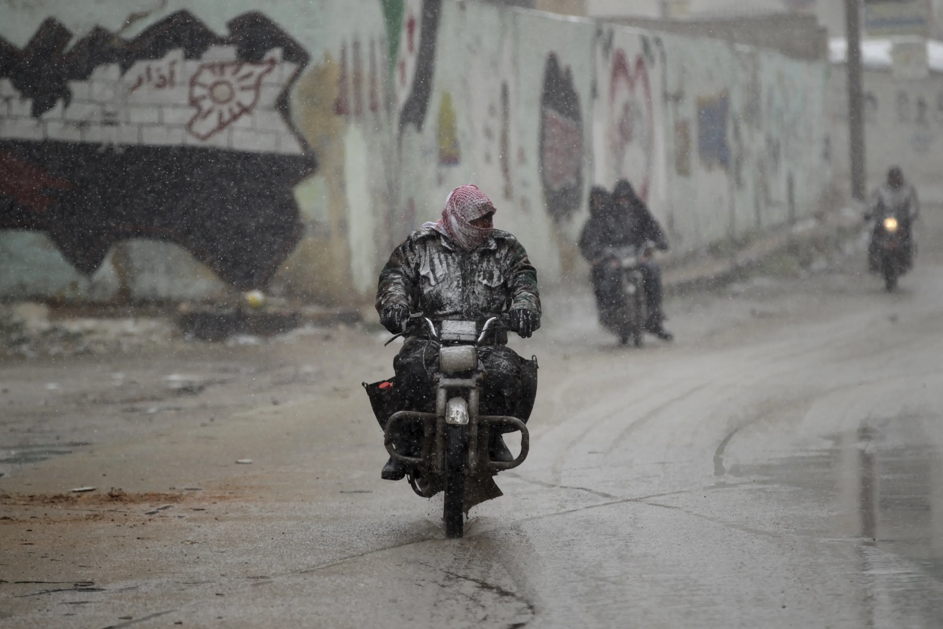 Men drive motorcycles during a snowstorm in Jabal al-Zawiya, in the southern countryside of Idlib, Syria January 1, 2015. (Photo by Khalil Ashawi/Reuters)