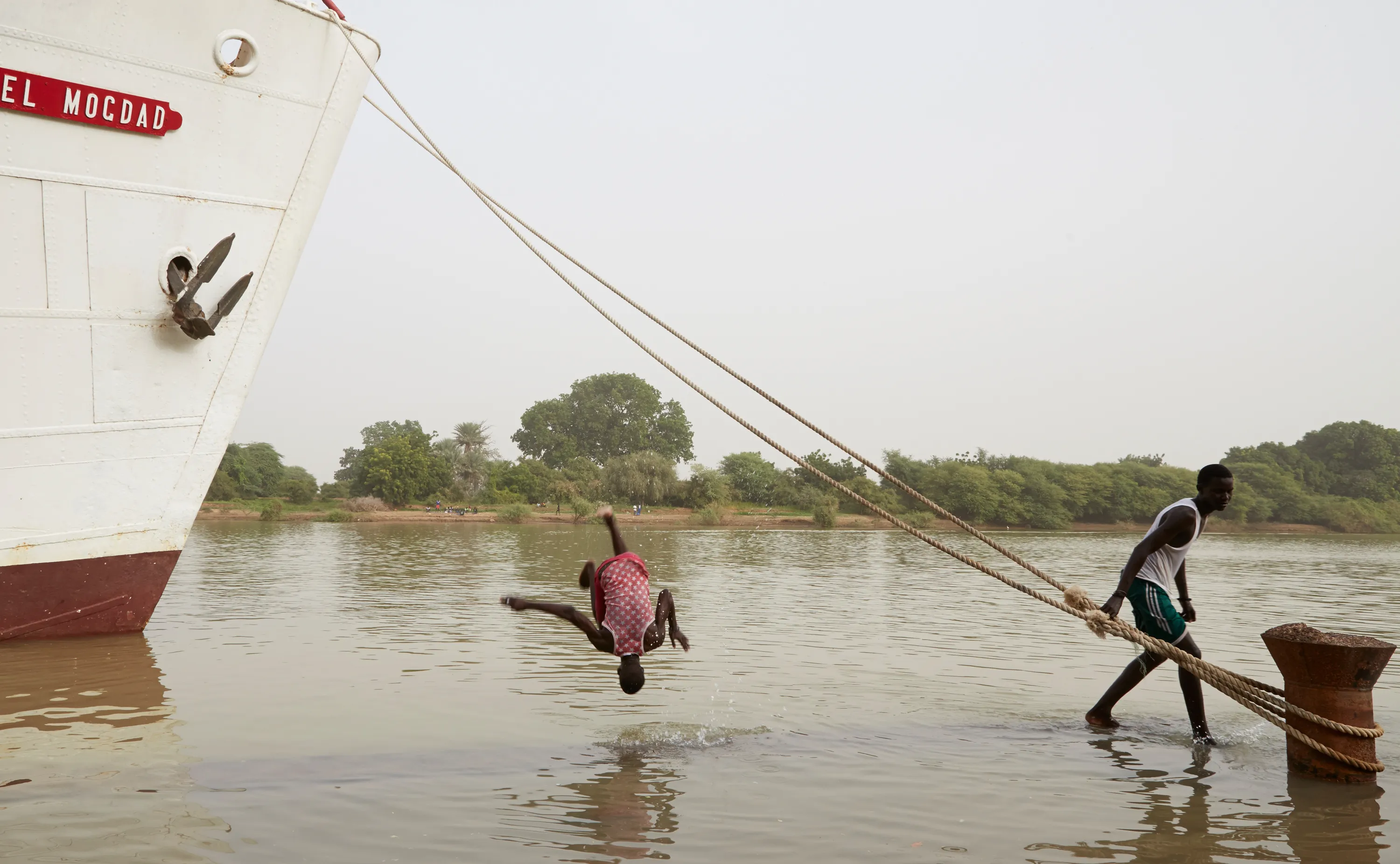 Boys play in the river Fleuve, which forms the border between Senegal and Mauritania, and passes through Guinea and Mali. (Photo by Andy Hall/The Observer)