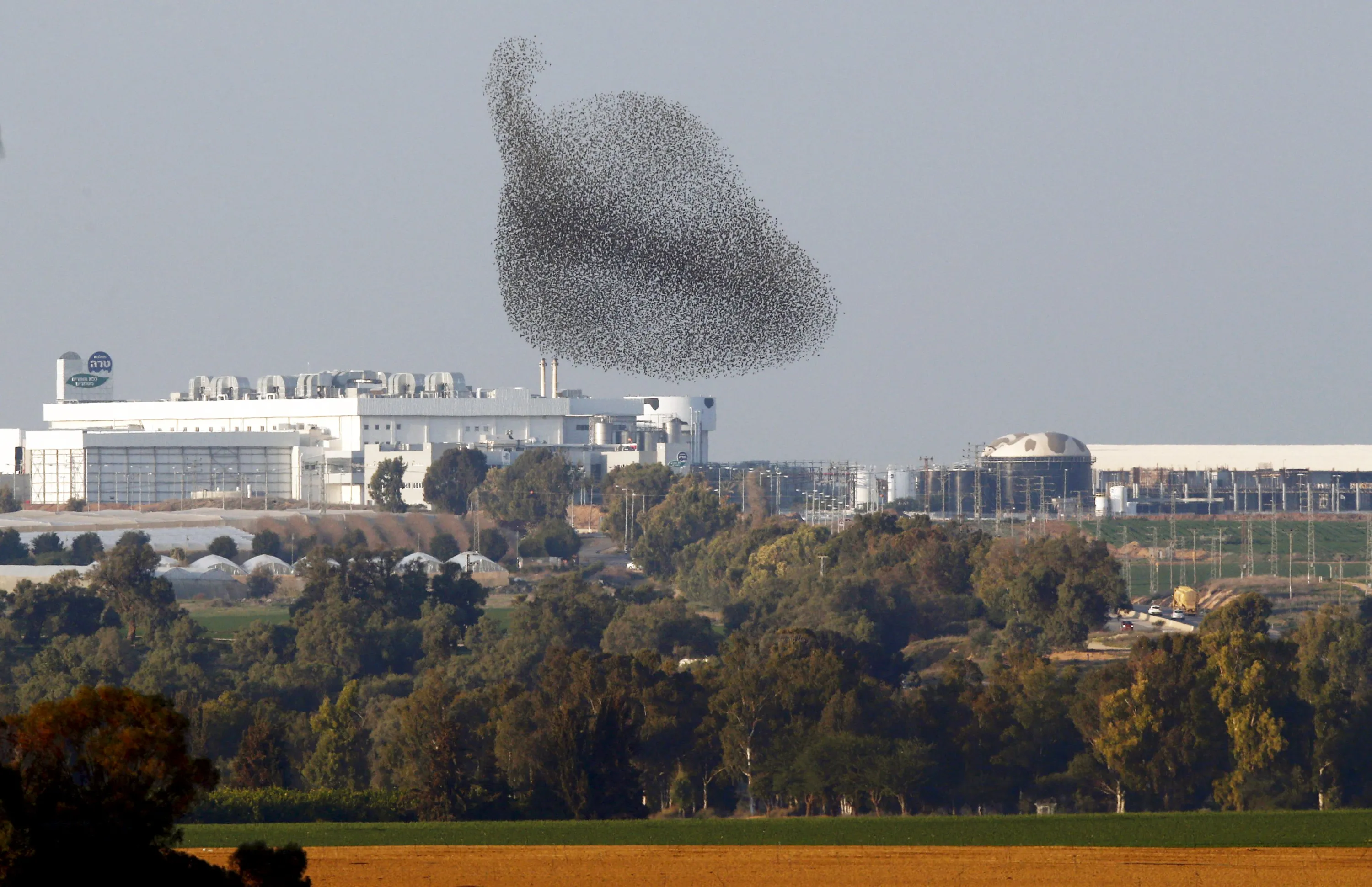 A murmuration of migrating starlings is seen across the sky near the southern Israeli town of Netivot December 31, 2015. (Photo by Amir Cohen/Reuters)