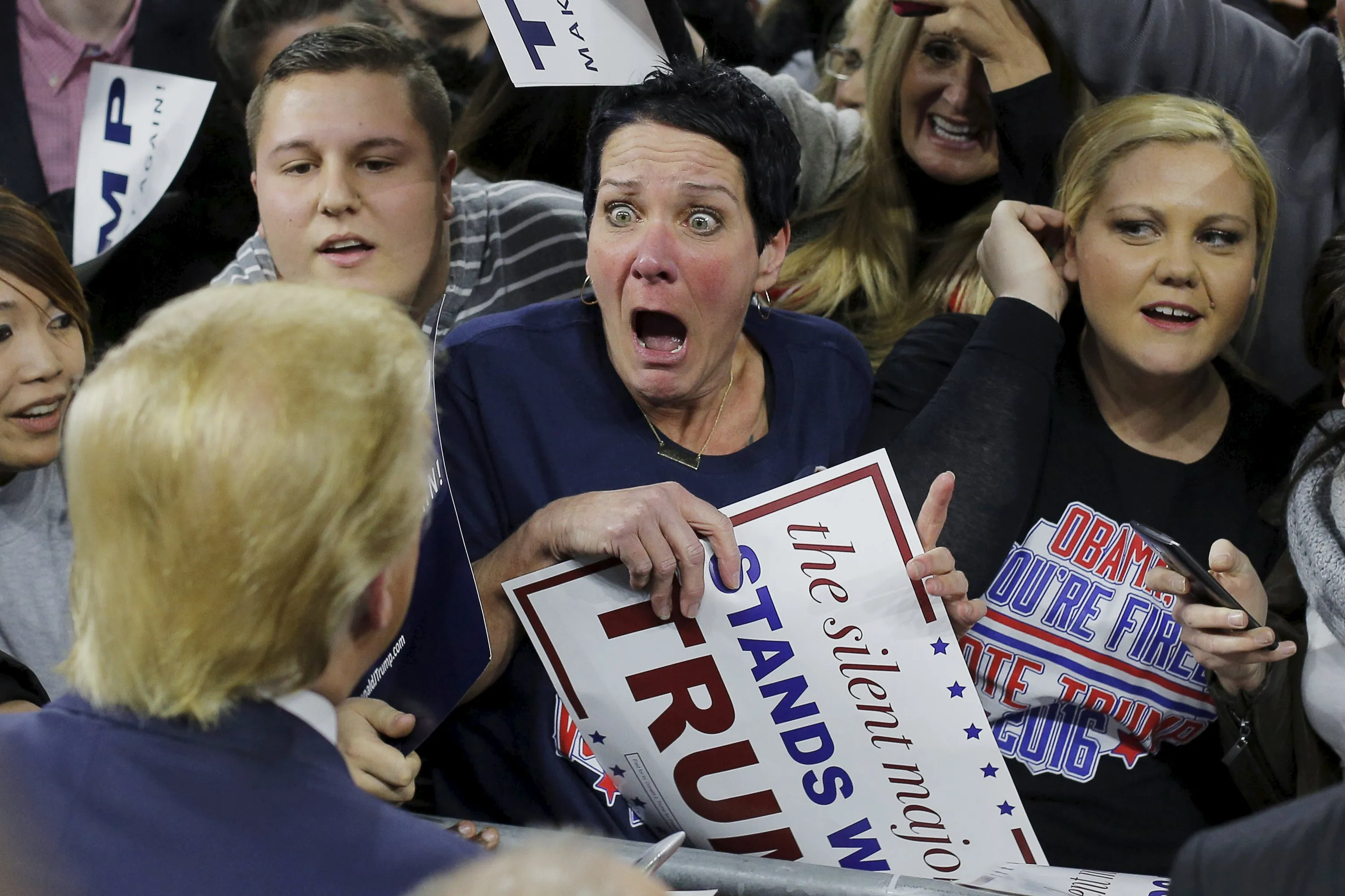 Audience member Robin Roy (C) reacts as U.S. Republican presidential candidate Donald Trump greets her at a campaign rally in Lowell, Massachusetts January 4, 2016. (Photo by Brian Snyder/Reuters)