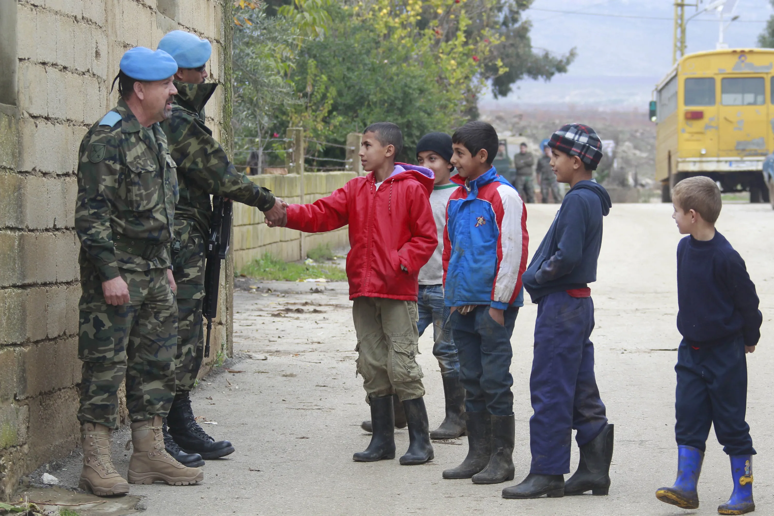 Boys greet members of U.N. peacekeepers of the United Nations Interim Force in Lebanon (UNIFIL) in the town of Al Wazzani, near the Lebanese-Israeli border, in southern Lebanon January 5, 2016. (Photo by Aziz Taher/Reuters)