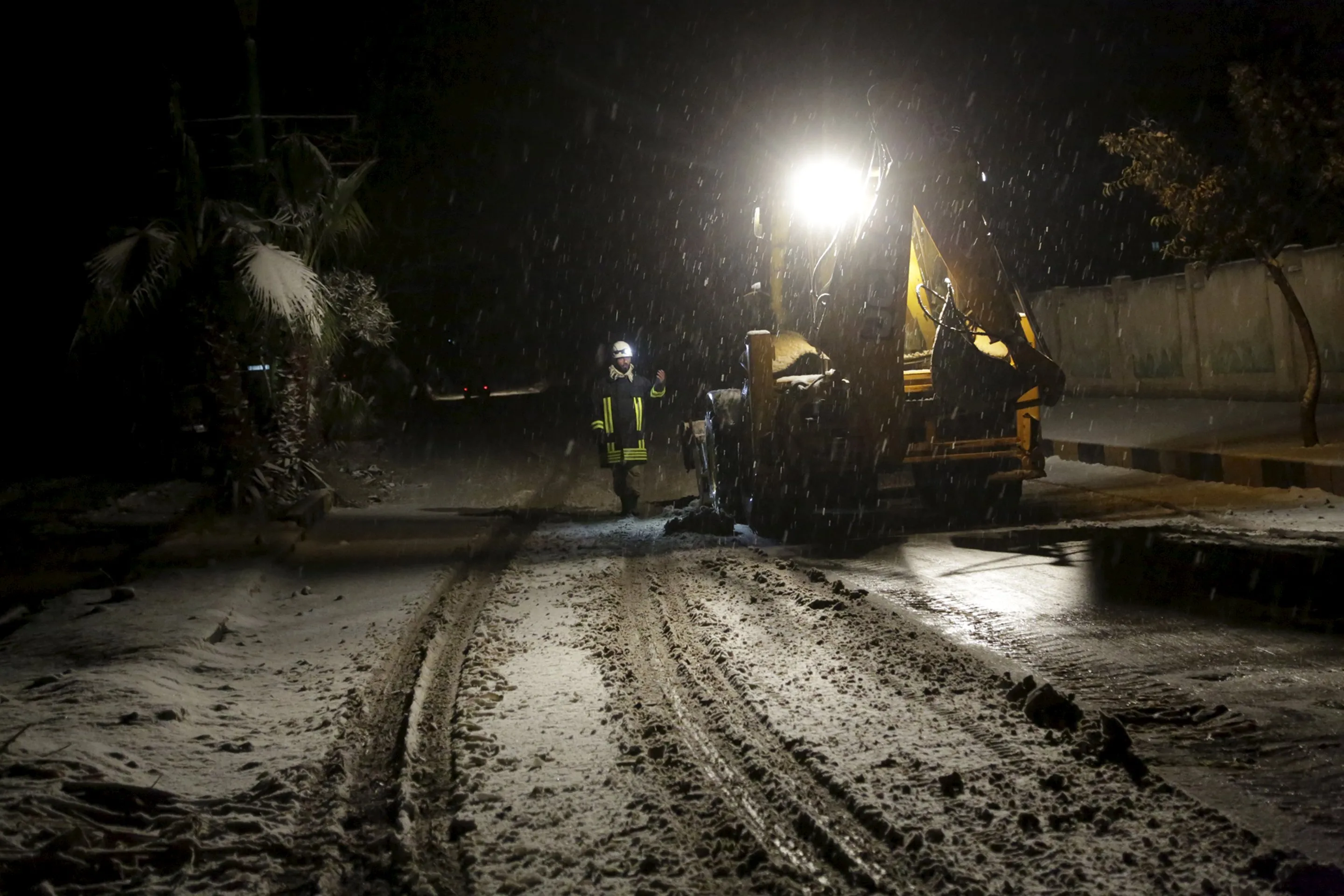 A civil defense member guides a snowplough opening a road in the rebel-controlled area of Maaret al-Numan town in Idlib province, Syria January 4, 2016. (Photo by Khalil Ashawi/Reuters)